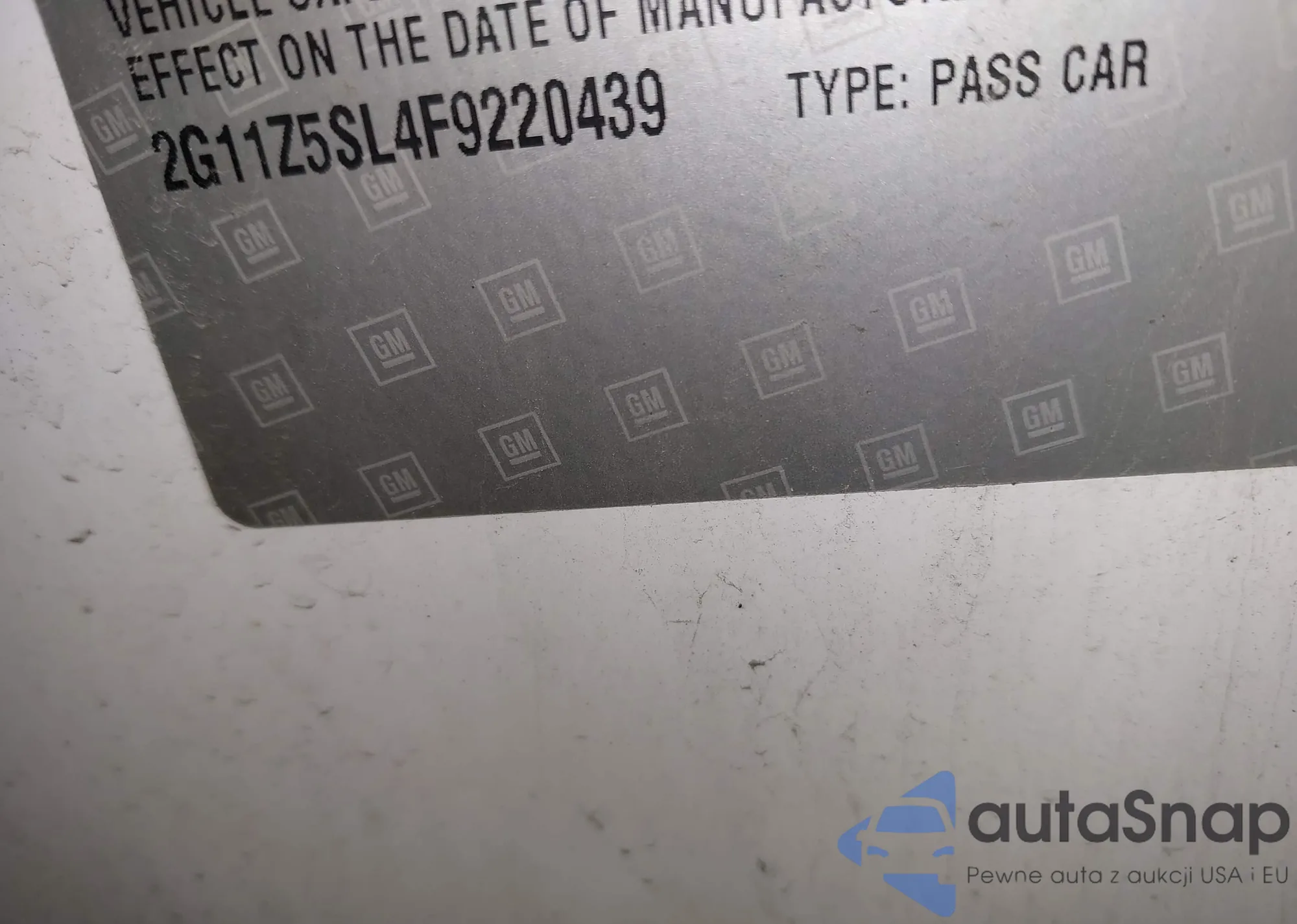 VIN: 2G11Z5SL4F9220439