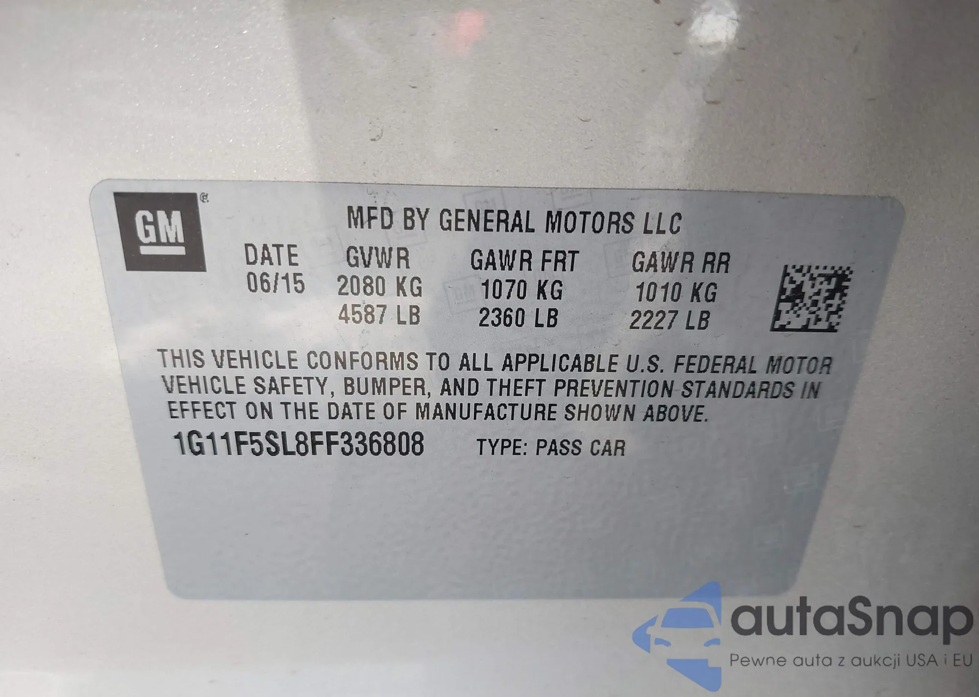 • VIN: 1G11F5SL8FF336808