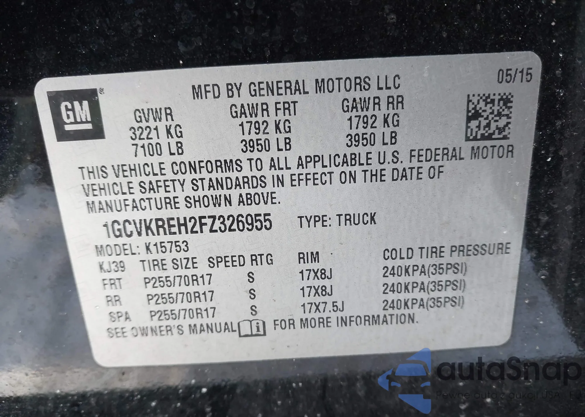 The car Chevrolet Silverado 2015 (VIN 1GCVKREH2FZ326955) has not been auctioned before. The documents are clean, and the mileage matches or is below the market average. Sold by an insurance company – we recommend purchase. Delivery to the port will take approx. 6–8 weeks.