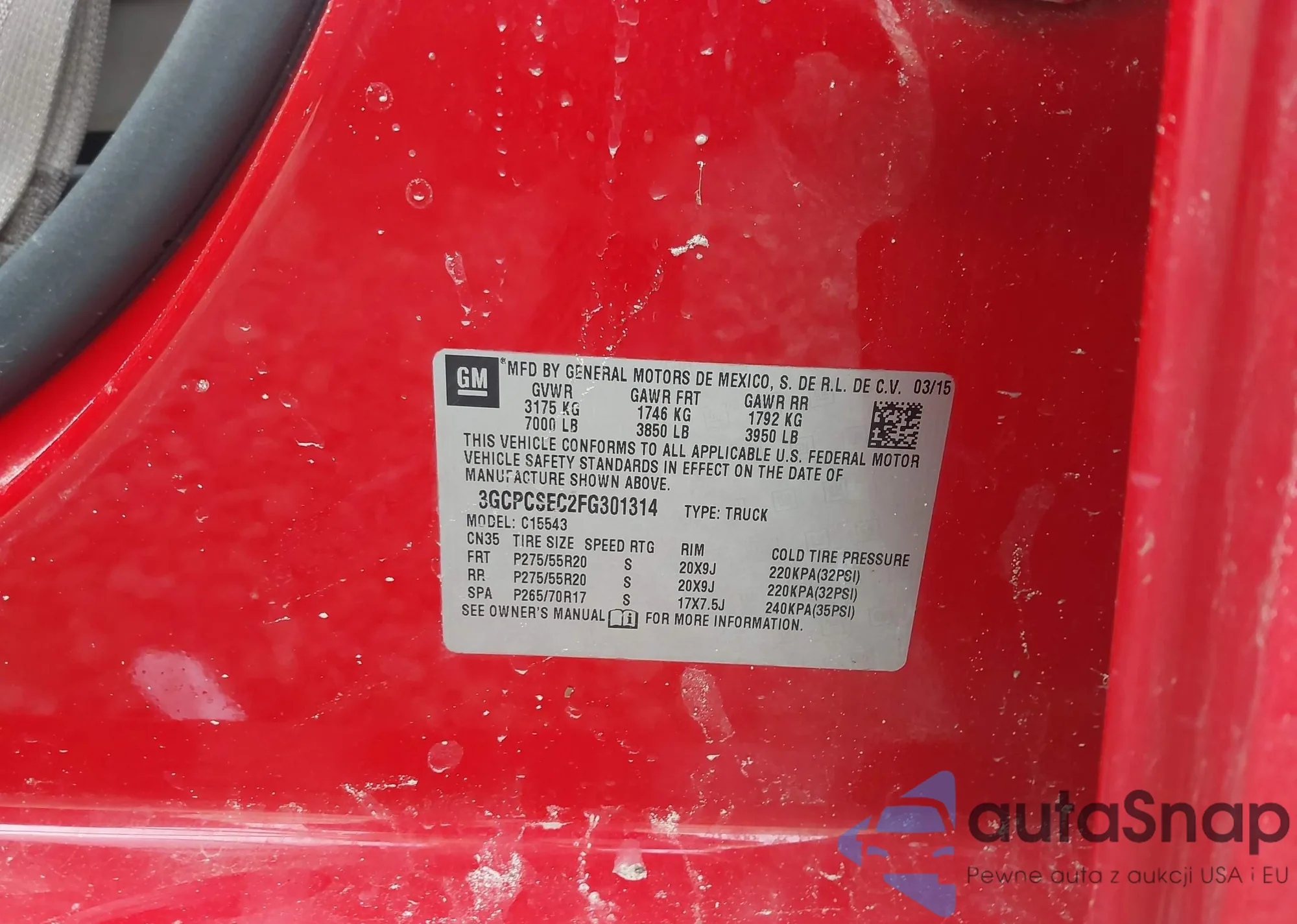 VIN: 3GCPCSEC2FG301314