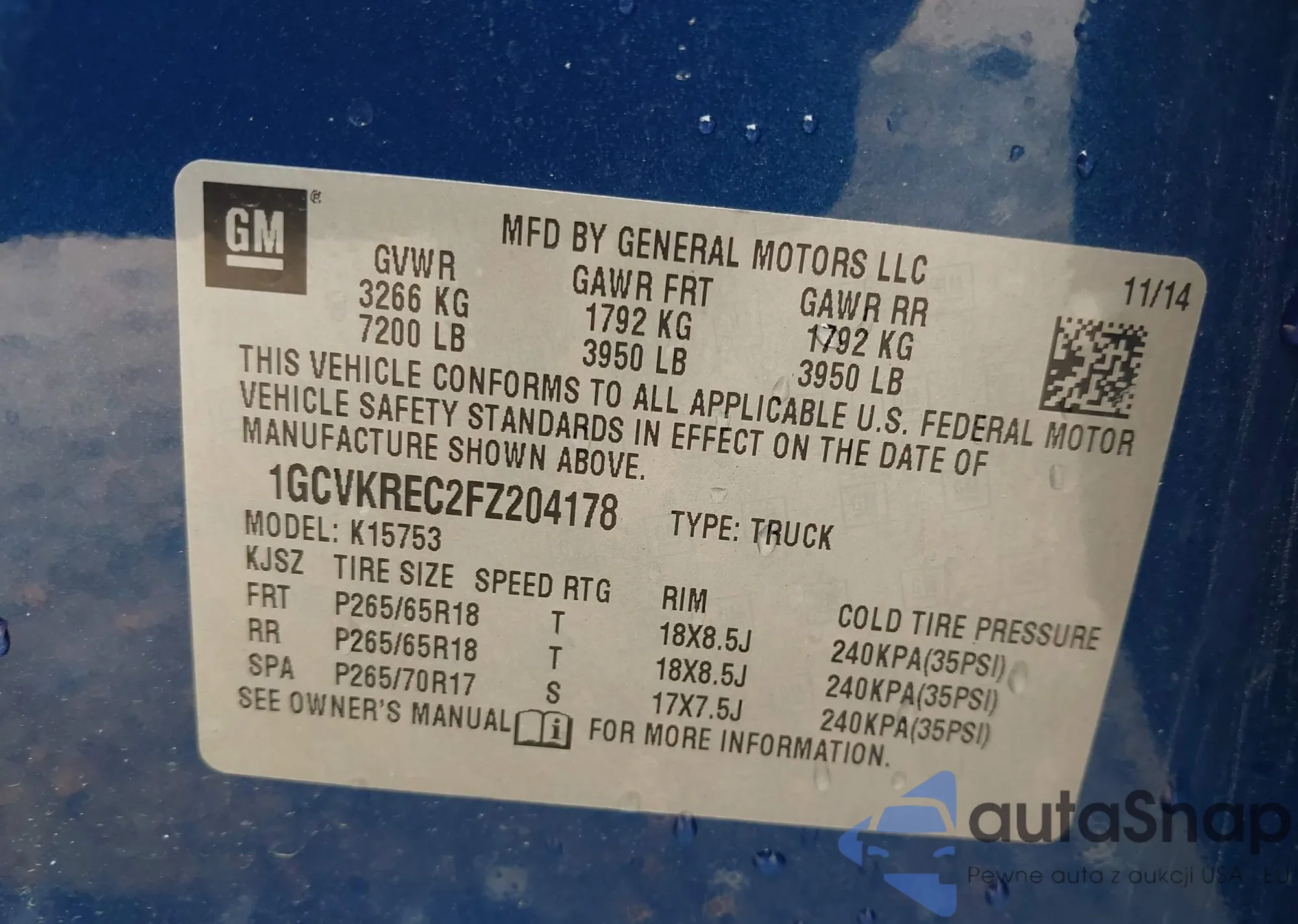 VIN: 1GCVKREC2FZ204178