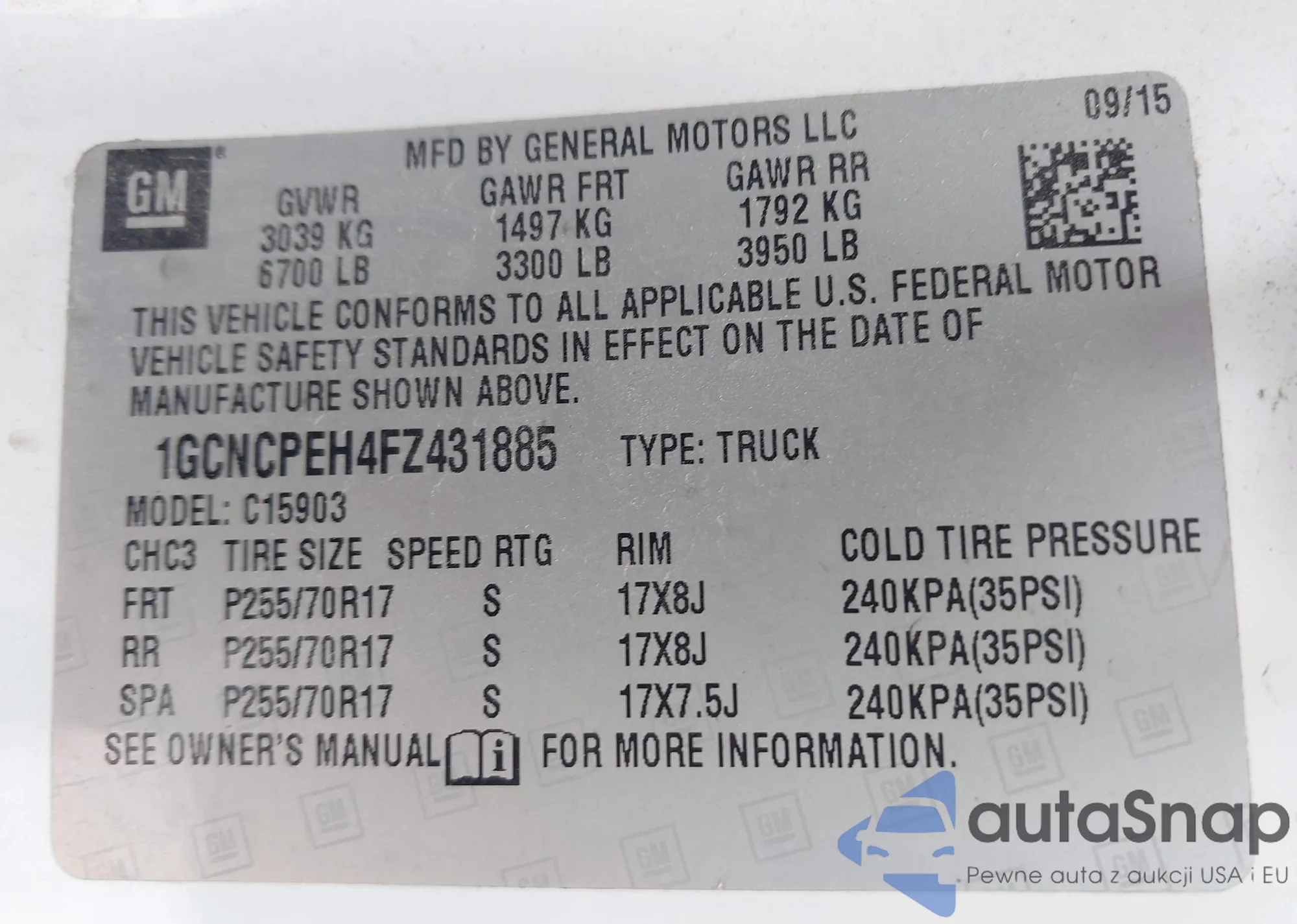 • VIN: 1GCNCPEH4FZ431885