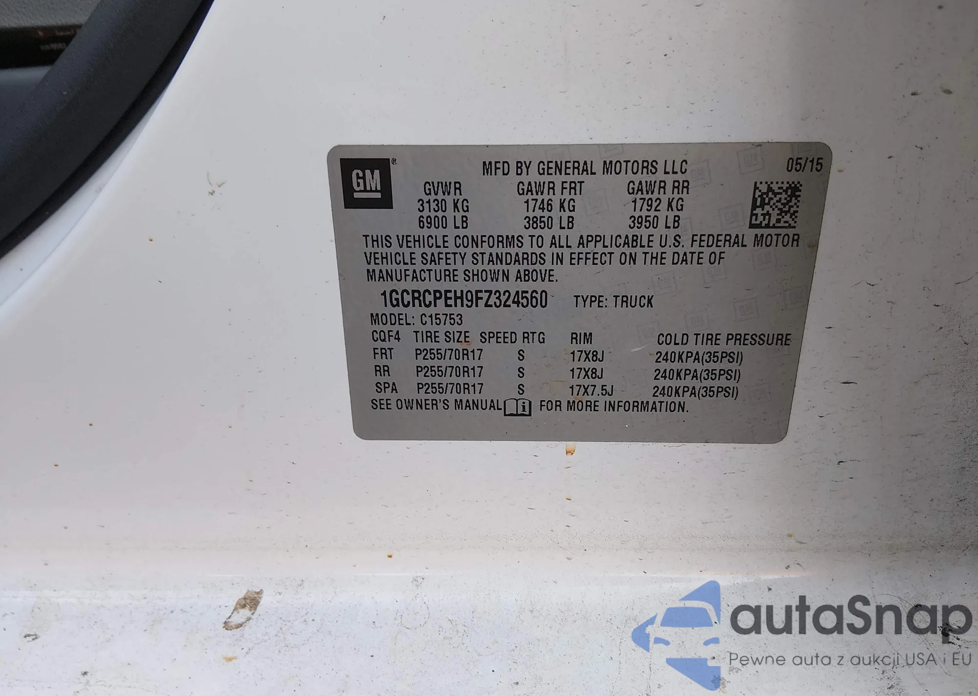 The car Chevrolet Silverado 2015 (VIN 1GCRCPEH9FZ324560) is sold by an unverified seller. We recommend checking the Carfax report and confirming registration possibilities before purchase.