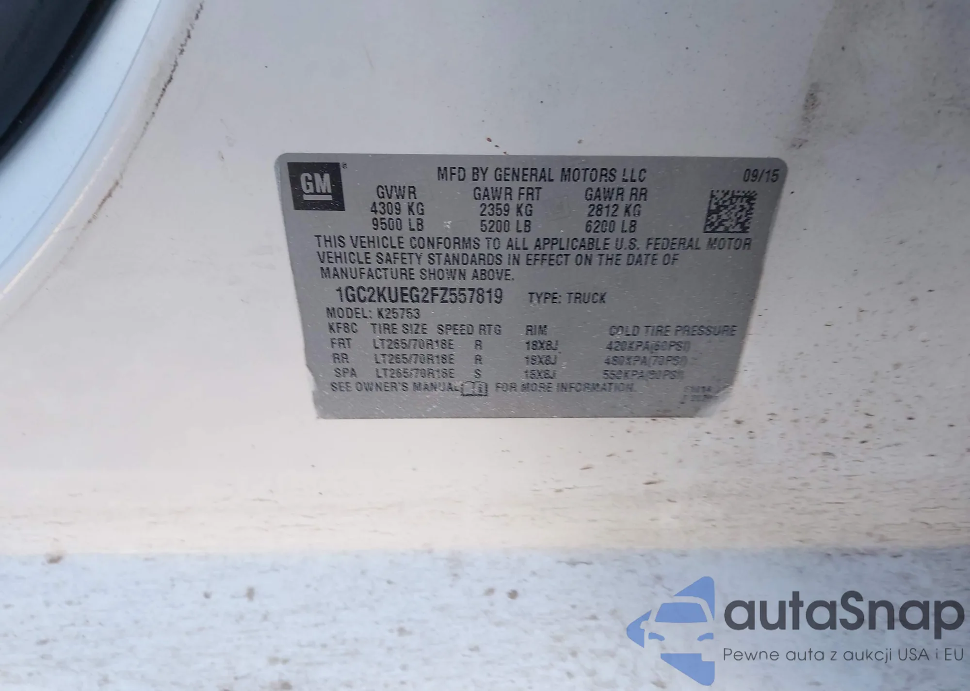 • VIN: 1GC2KUEG2FZ557819