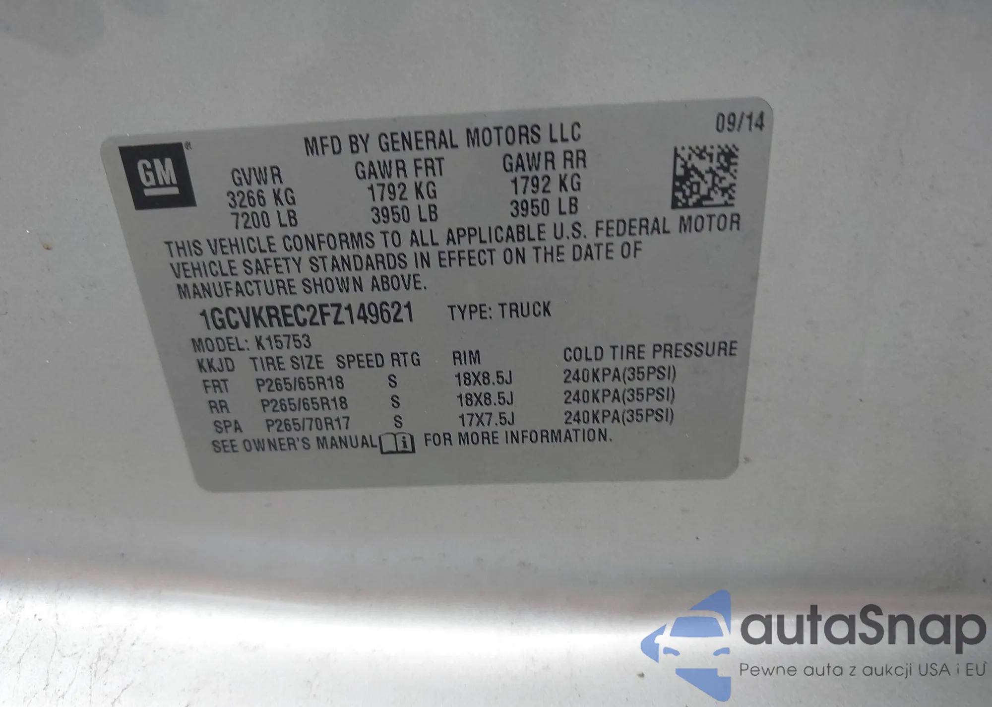 VIN: 1GCVKREC2FZ149621