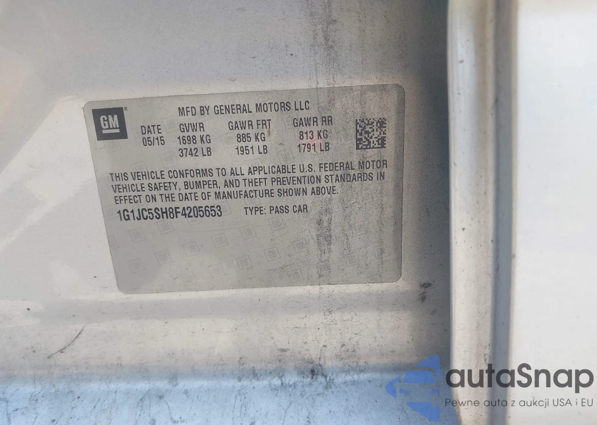 VIN: 1G1JC5SH8F4205653