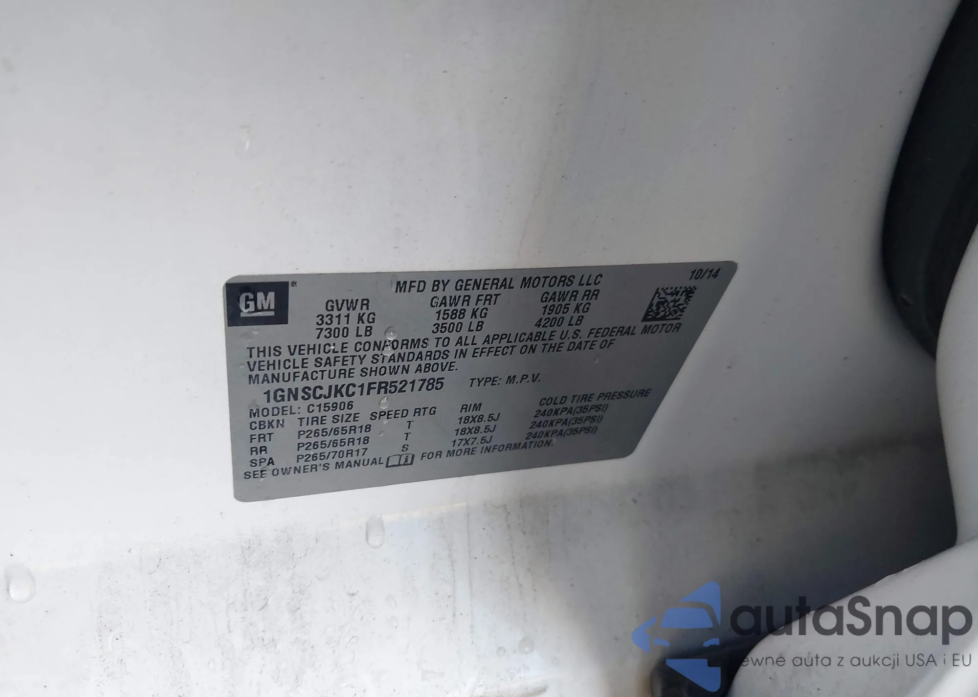 • VIN: 1GNSCJKC1FR521785