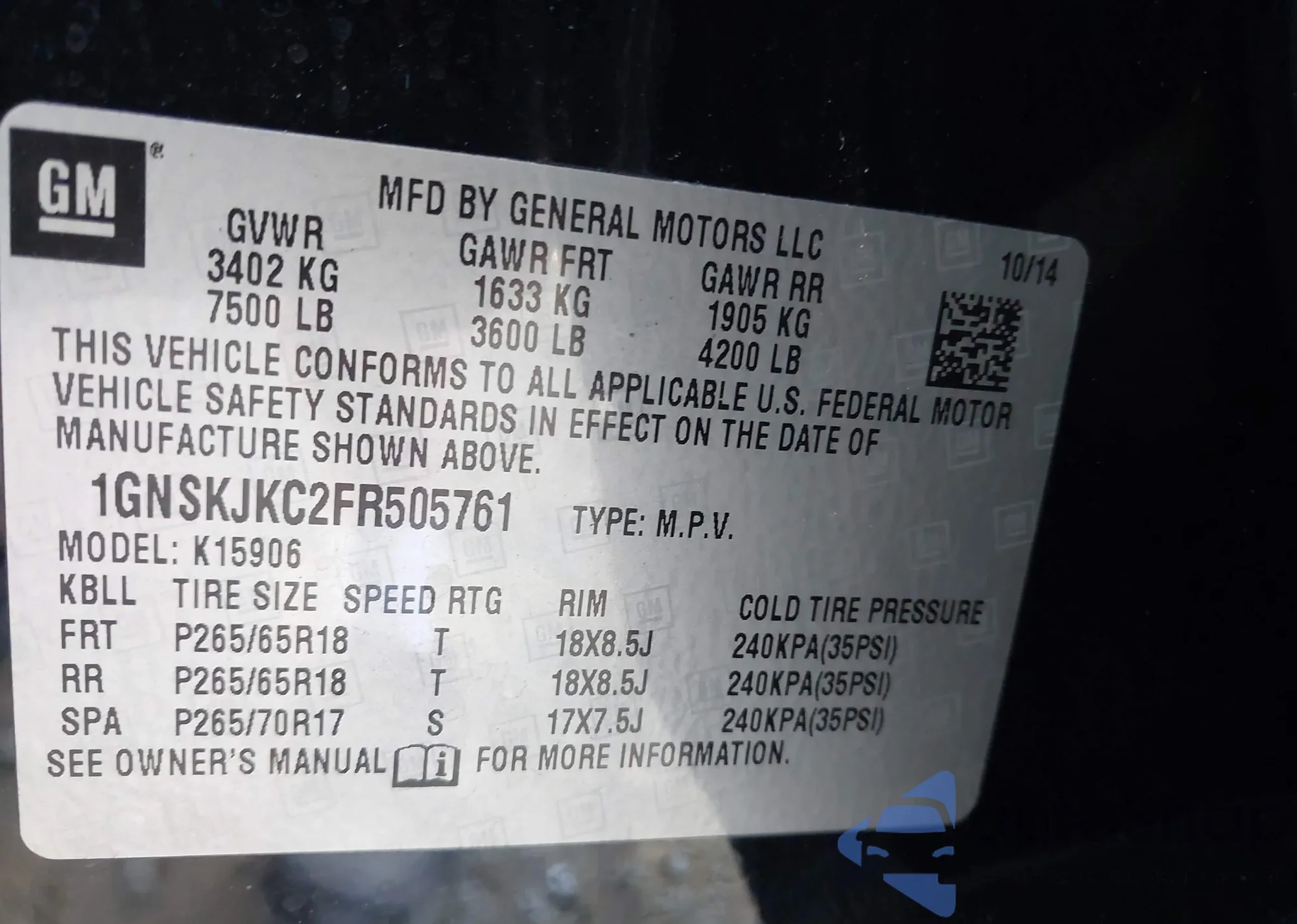 VIN: 1GNSKJKC2FR505761