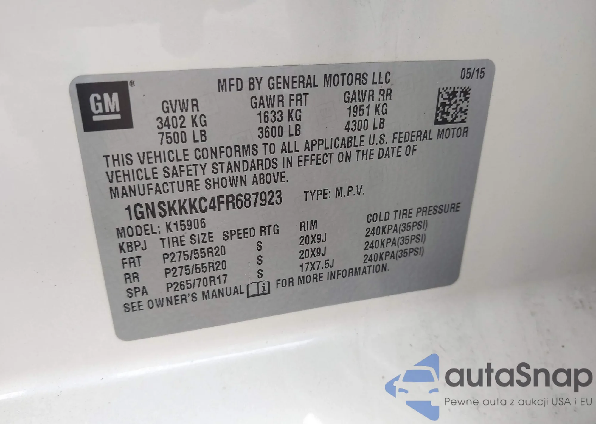 VIN: 1GNSKKKC4FR687923