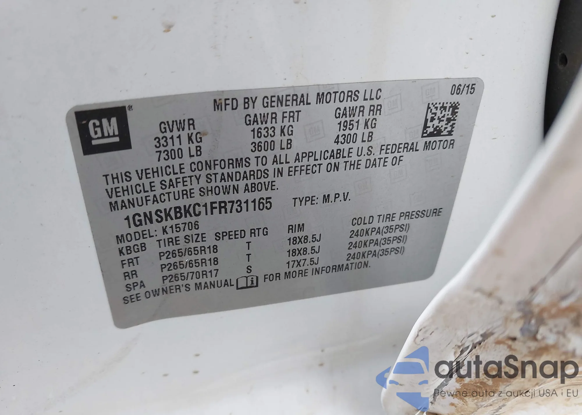 • VIN: 1GNSKBKC1FR731165