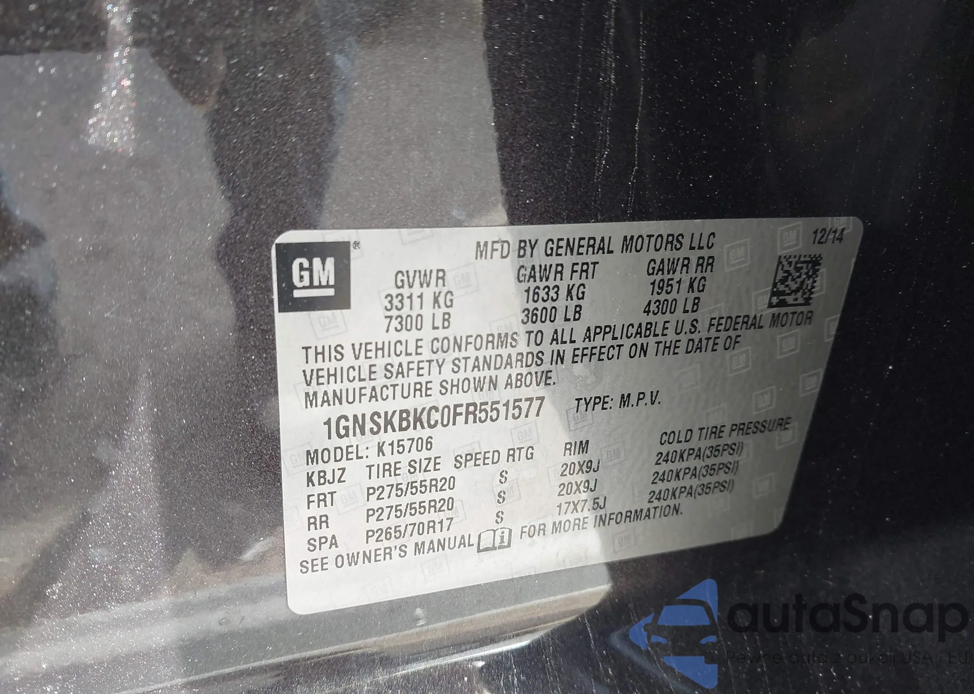 • VIN: 1GNSKBKC0FR551577