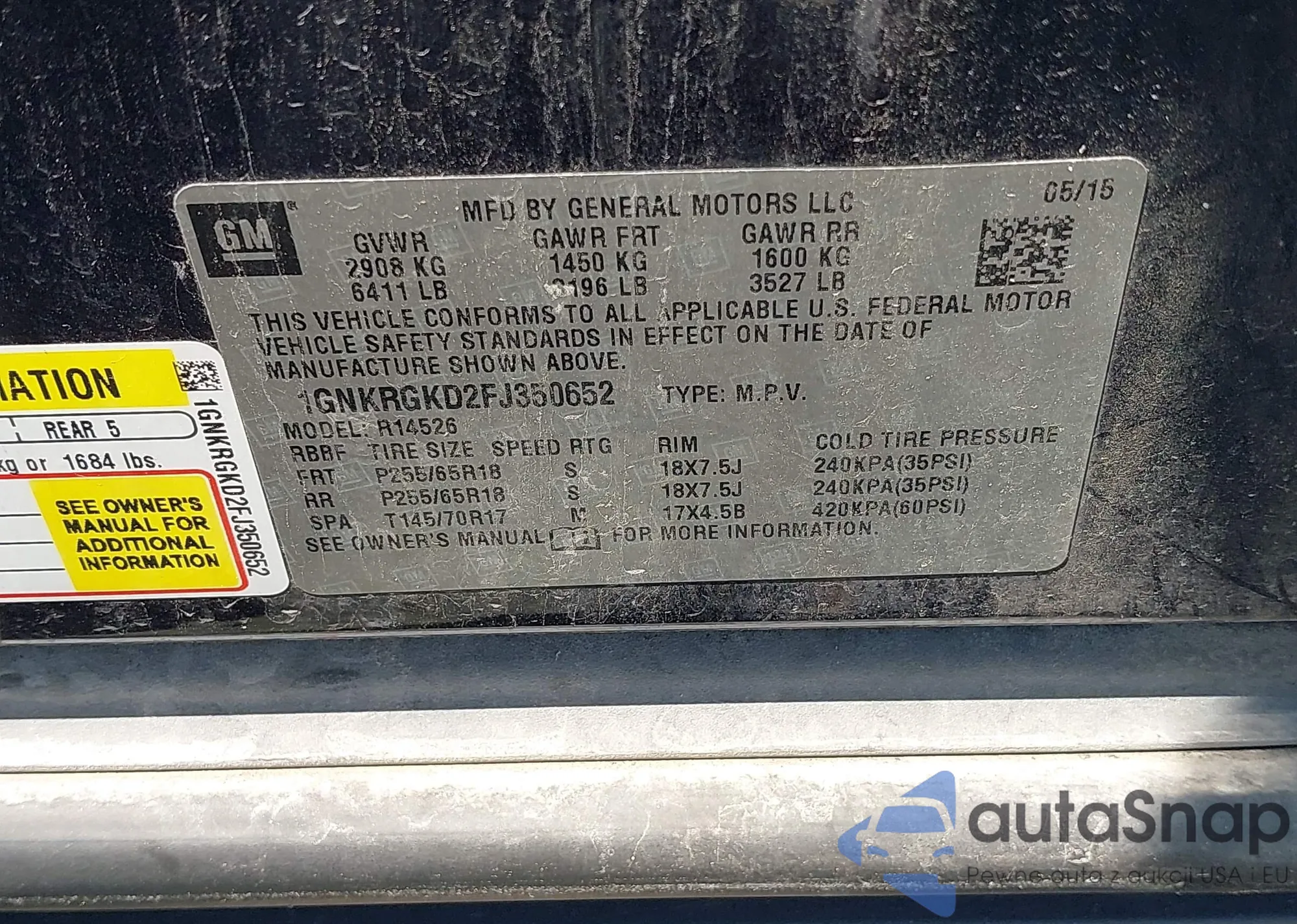 VIN: 1GNKRGKD2FJ350652
