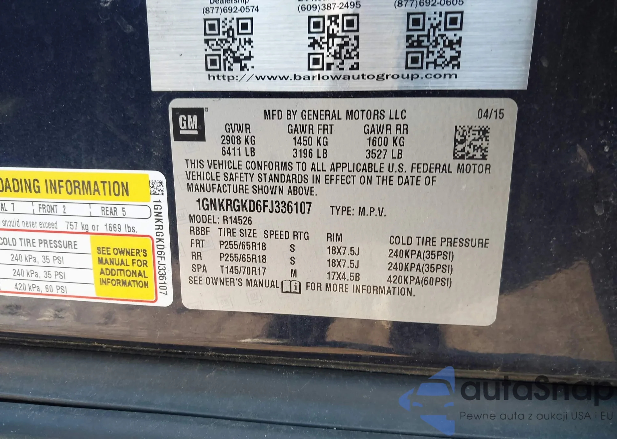 VIN: 1GNKRGKD6FJ336107