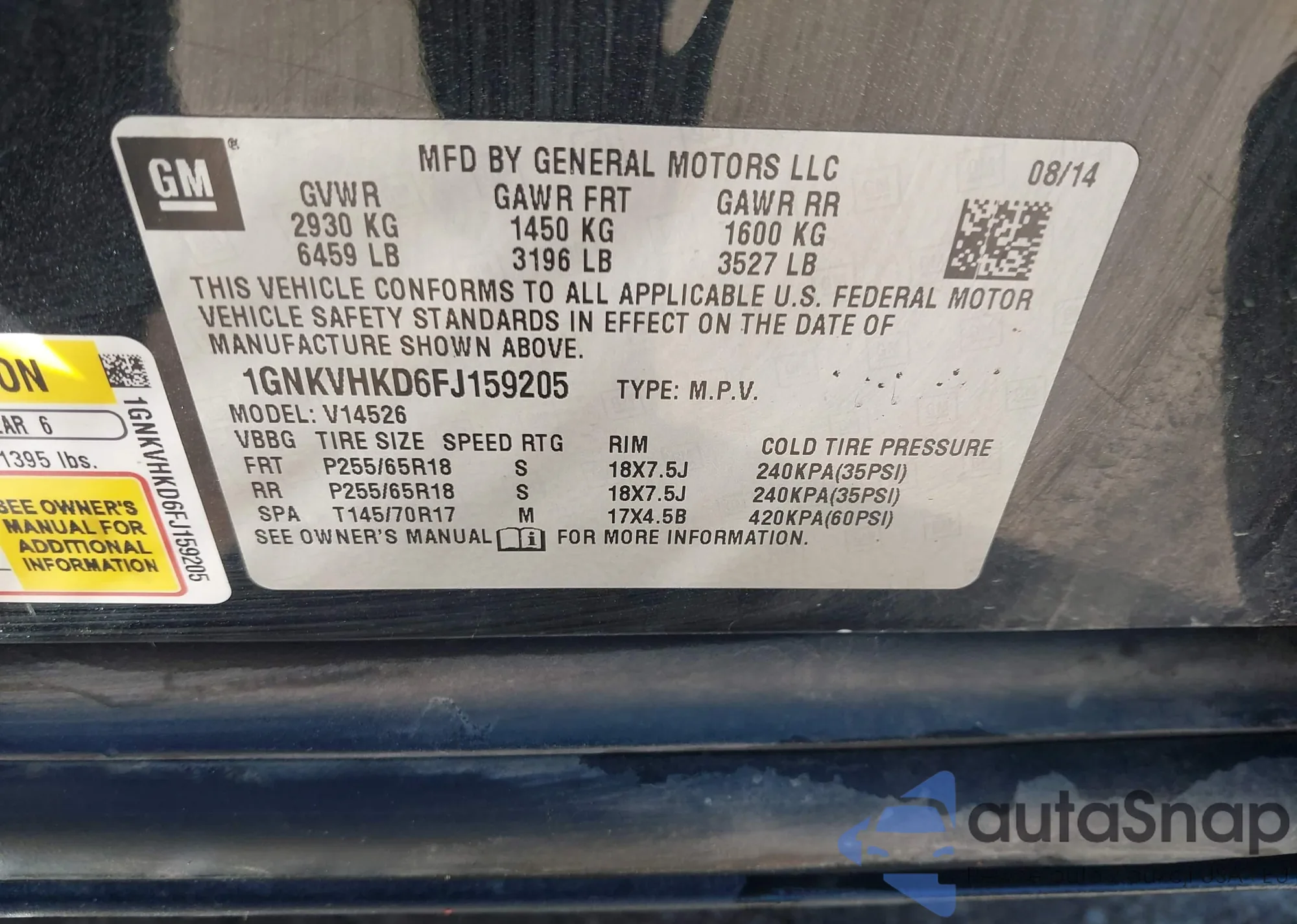 The car Chevrolet Traverse 2015 (VIN 1GNKVHKD6FJ159205) has not been auctioned before. The documents are clean, and the mileage matches or is below the market average. Sold by an insurance company – we recommend purchase. Delivery to the port will take approx. 6–8 weeks.