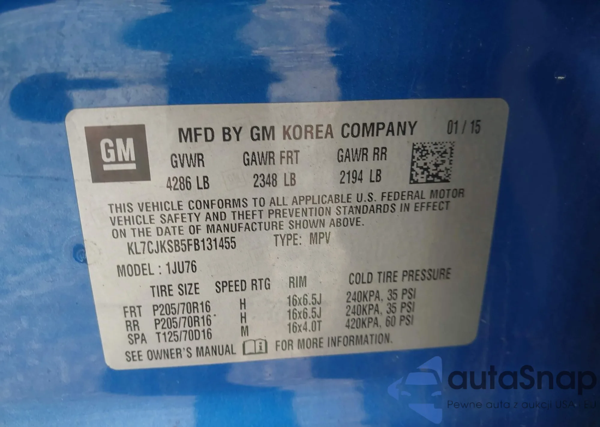 VIN: KL7CJKSB5FB131455