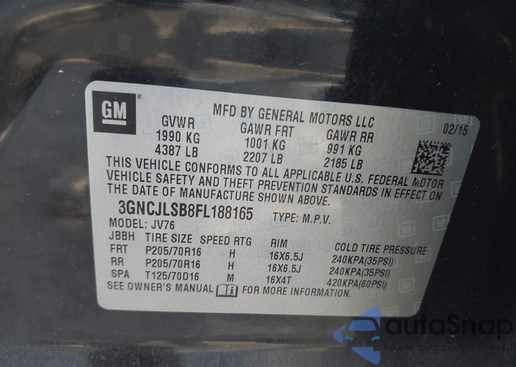 VIN: 3GNCJLSB8FL188165