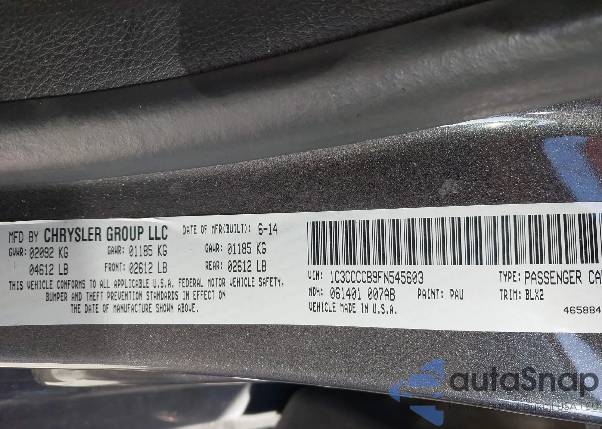 The car Chrysler 200 2015 (VIN 1C3CCCCB9FN545603) has not been auctioned before. The documents are clean, and the mileage matches or is below the market average. Sold by an insurance company – we recommend purchase. Delivery to the port will take approx. 6–8 weeks.