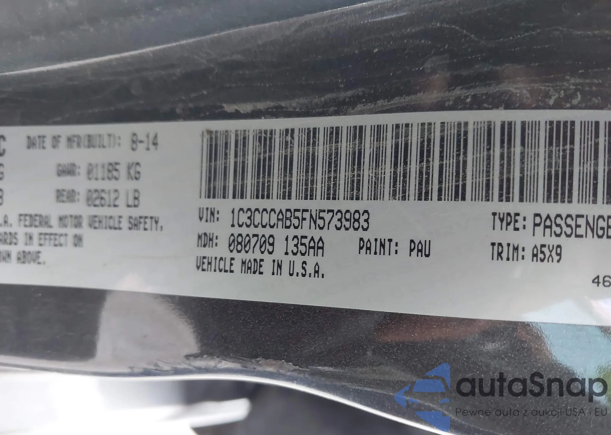 The car Chrysler 200 2015 (VIN 1C3CCCAB5FN573983) has already been auctioned 1 times and/or is sold by an unverified seller. We recommend checking the Carfax report and confirming registration possibilities before purchase.
