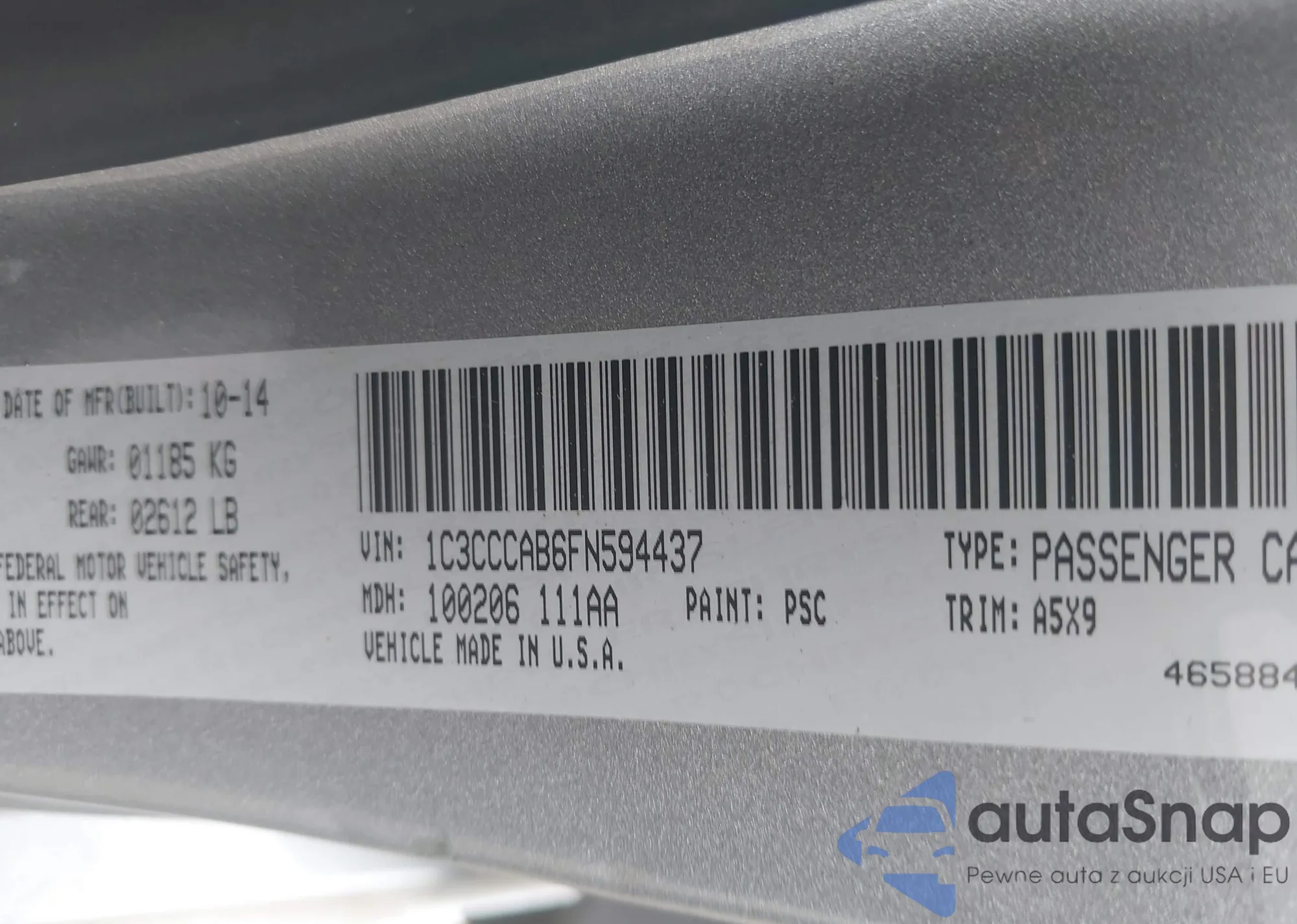 • VIN: 1C3CCCAB6FN594437