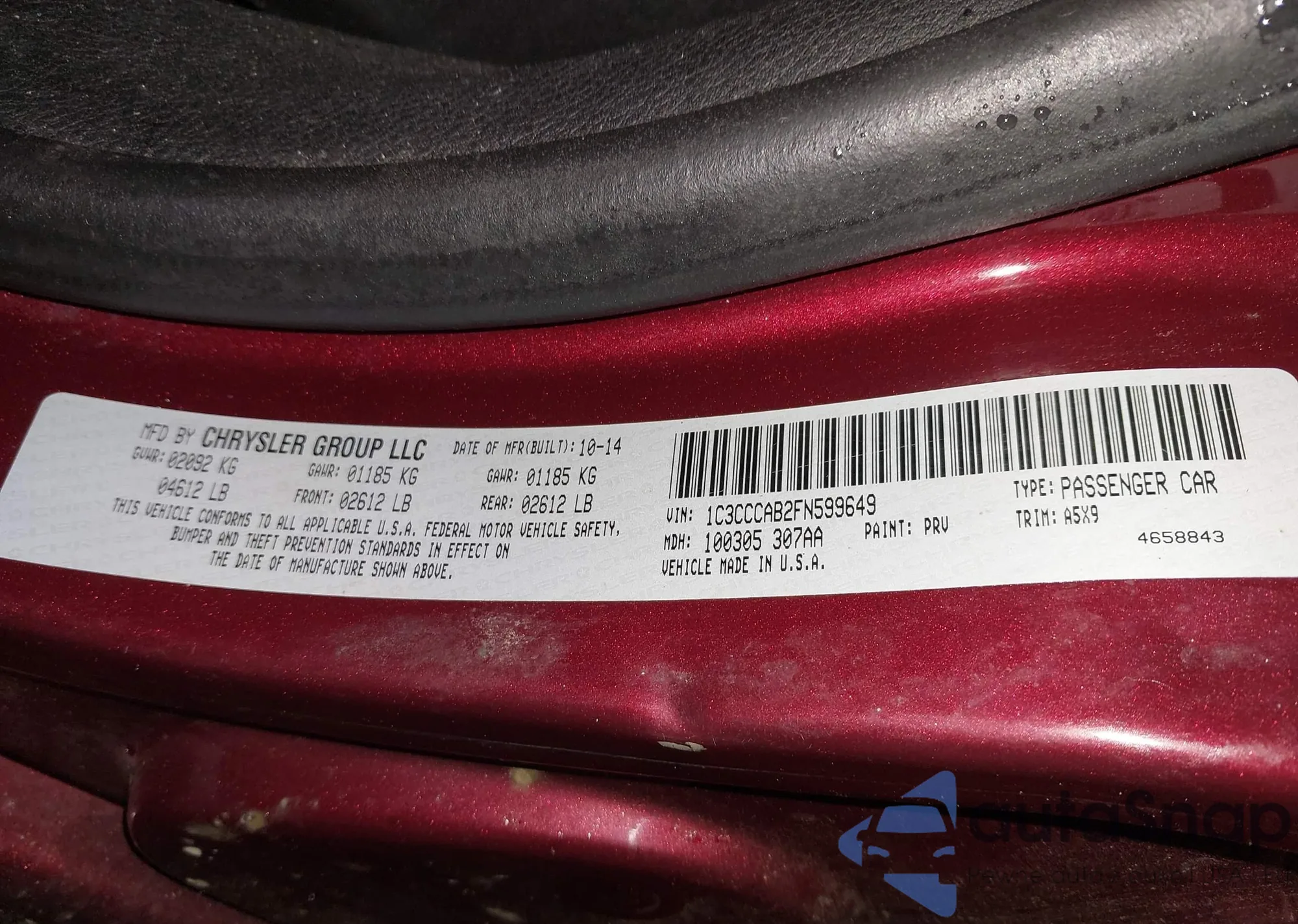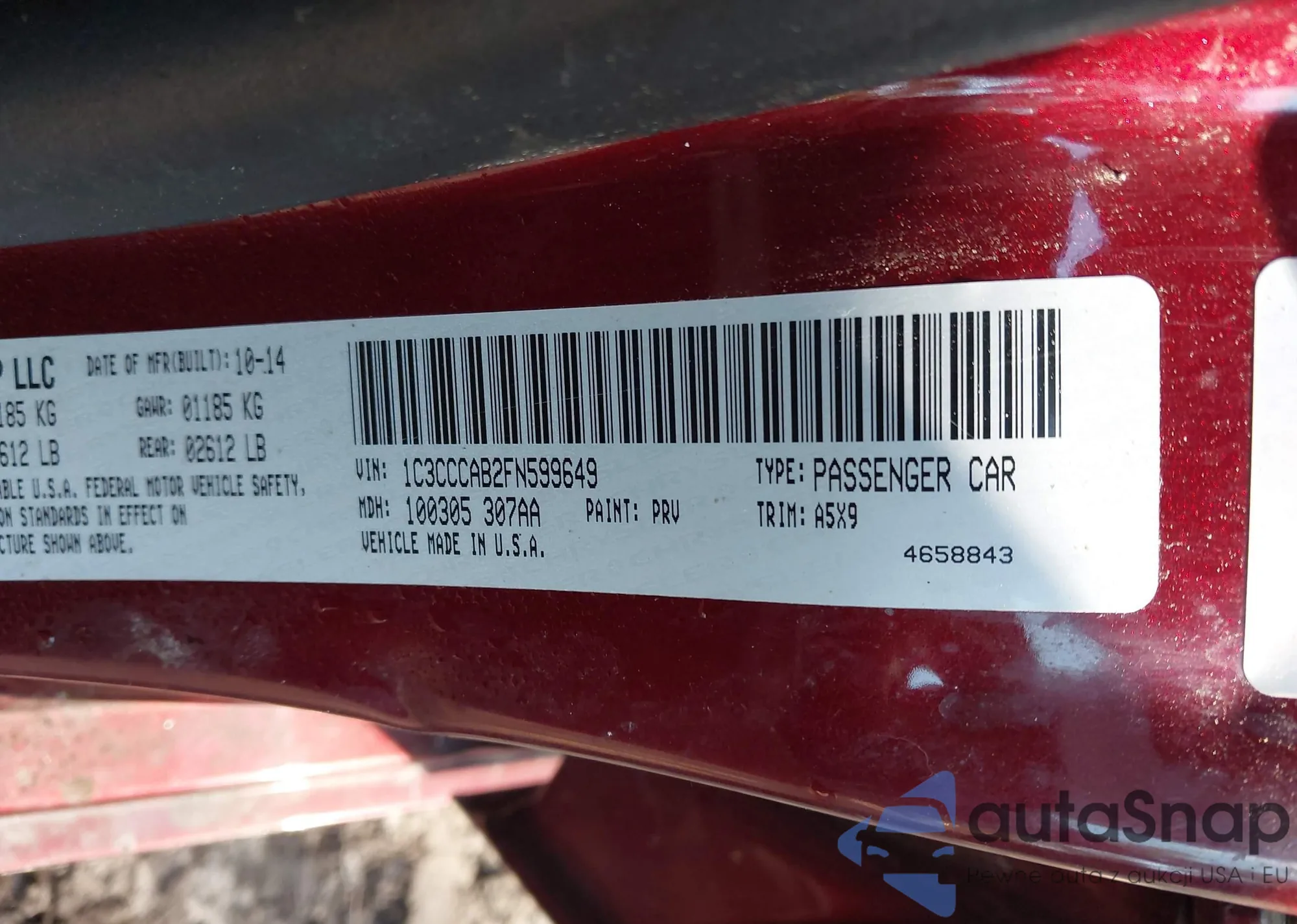 • VIN: 1C3CCCAB2FN599649