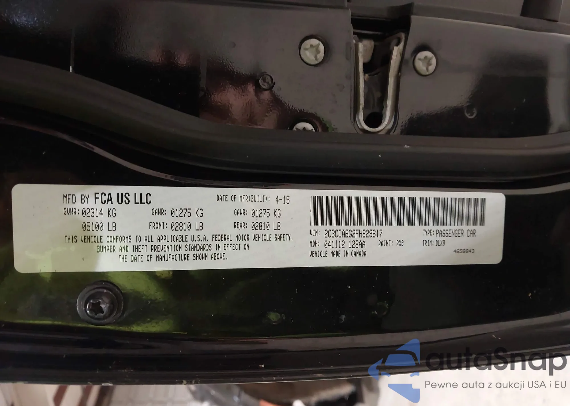 The car Chrysler 300 2015 (VIN 2C3CCABG2FH829617) has not been auctioned before. The documents are clean, and the mileage matches or is below the market average. Sold by an insurance company – we recommend purchase. Delivery to the port will take approx. 6–8 weeks.