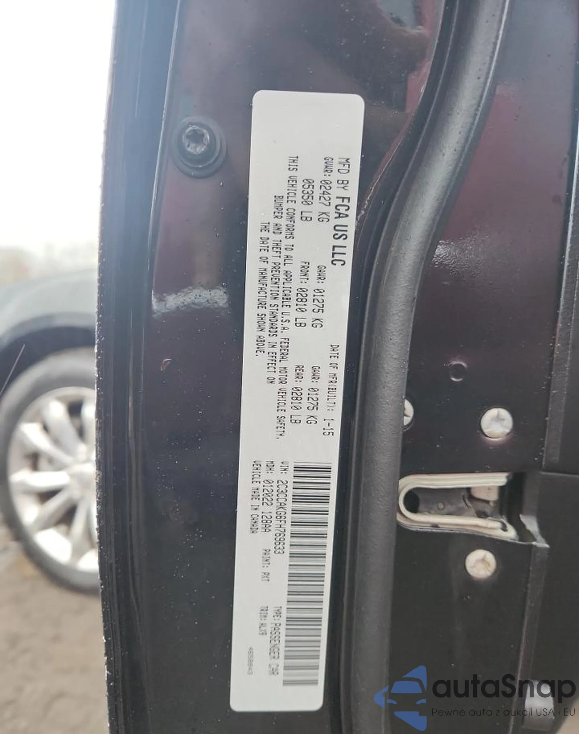 The car Chrysler 300C 2015 (VIN 2C3CCAKG6FH769633) has not been auctioned before. The documents are clean, and the mileage matches or is below the market average. Sold by an insurance company – we recommend purchase. Delivery to the port will take approx. 6–8 weeks.