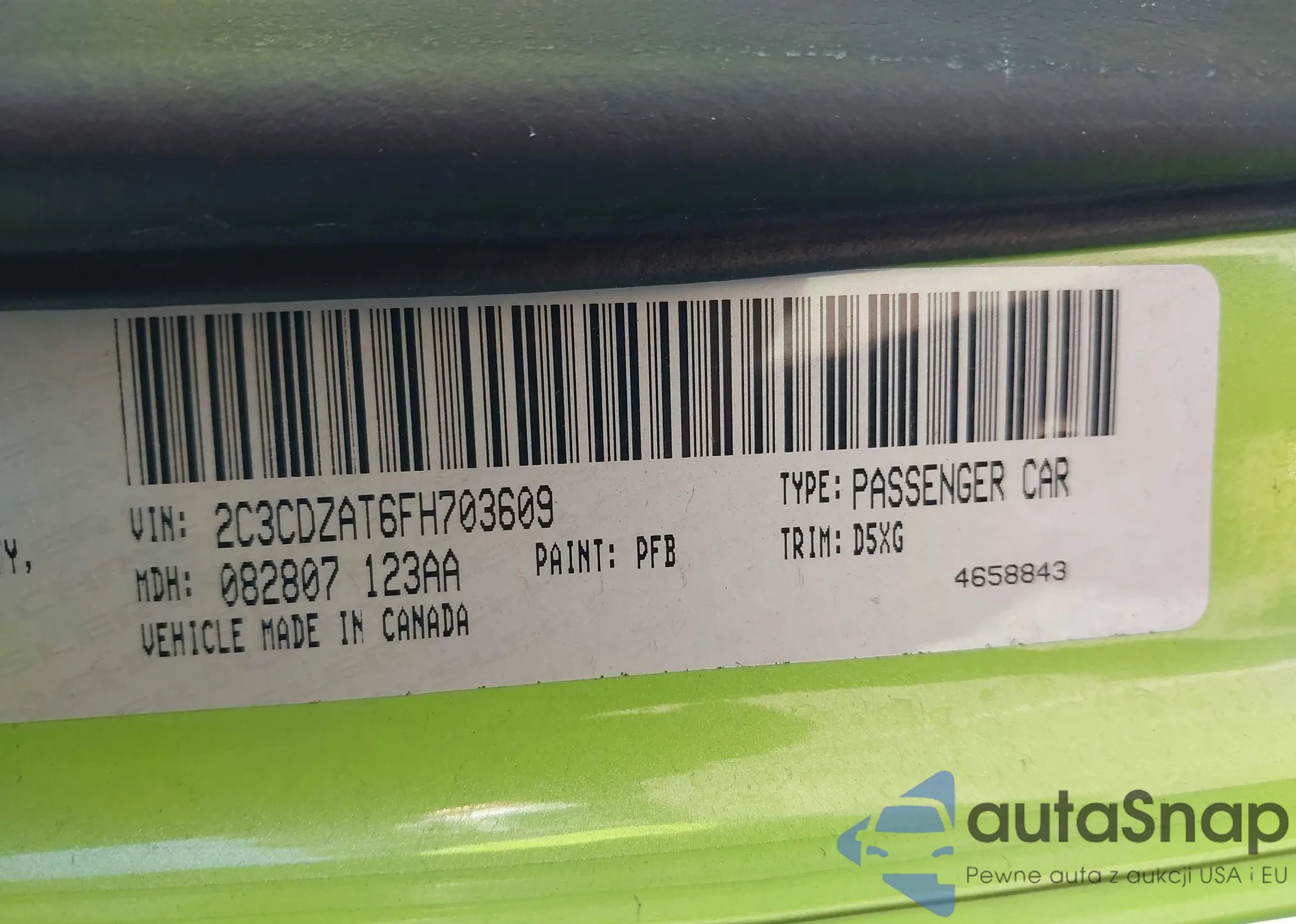 The car Dodge Challenger 2015 (VIN 2C3CDZAT6FH703609) has not been auctioned before. The documents are clean, and the mileage matches or is below the market average. Sold by an insurance company – we recommend purchase. Delivery to the port will take approx. 6–8 weeks.
