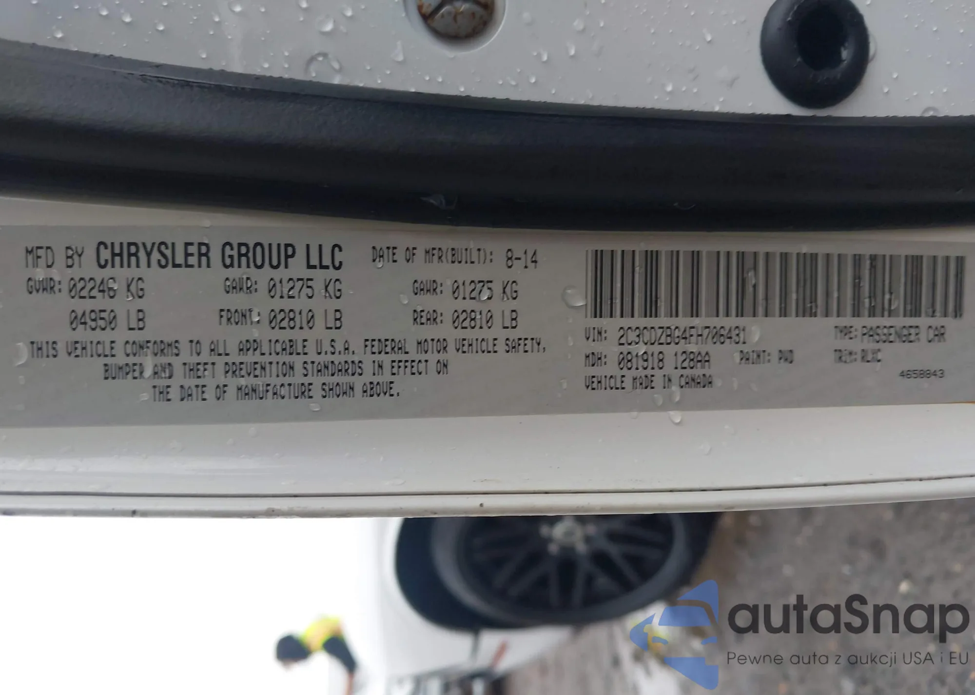 The car Dodge Challenger 2015 (VIN 2C3CDZBG4FH706431) has not been auctioned before. The documents are clean, and the mileage matches or is below the market average. Sold by an insurance company – we recommend purchase. Delivery to the port will take approx. 6–8 weeks.