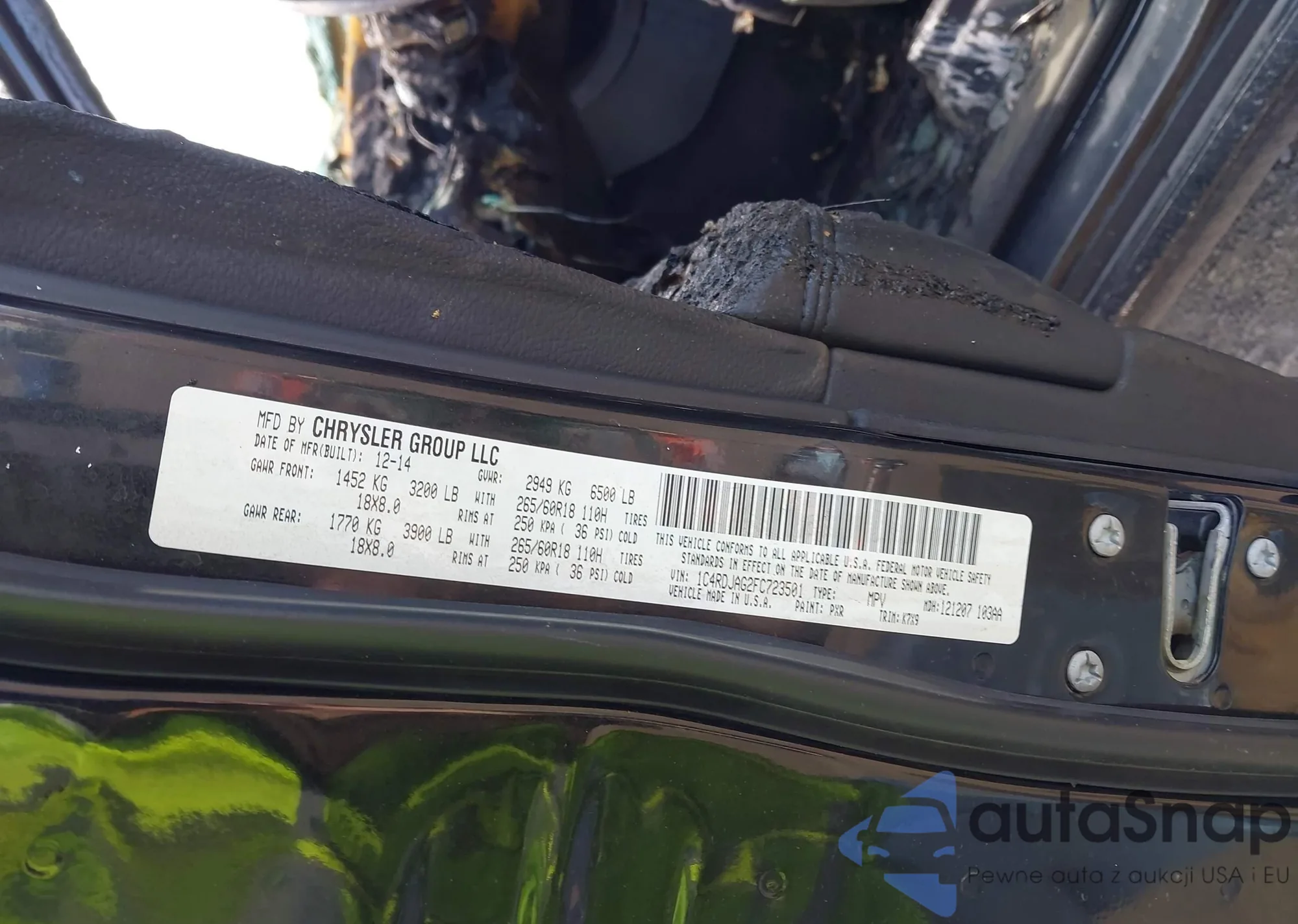 • VIN: 1C4RDJAG2FC723501