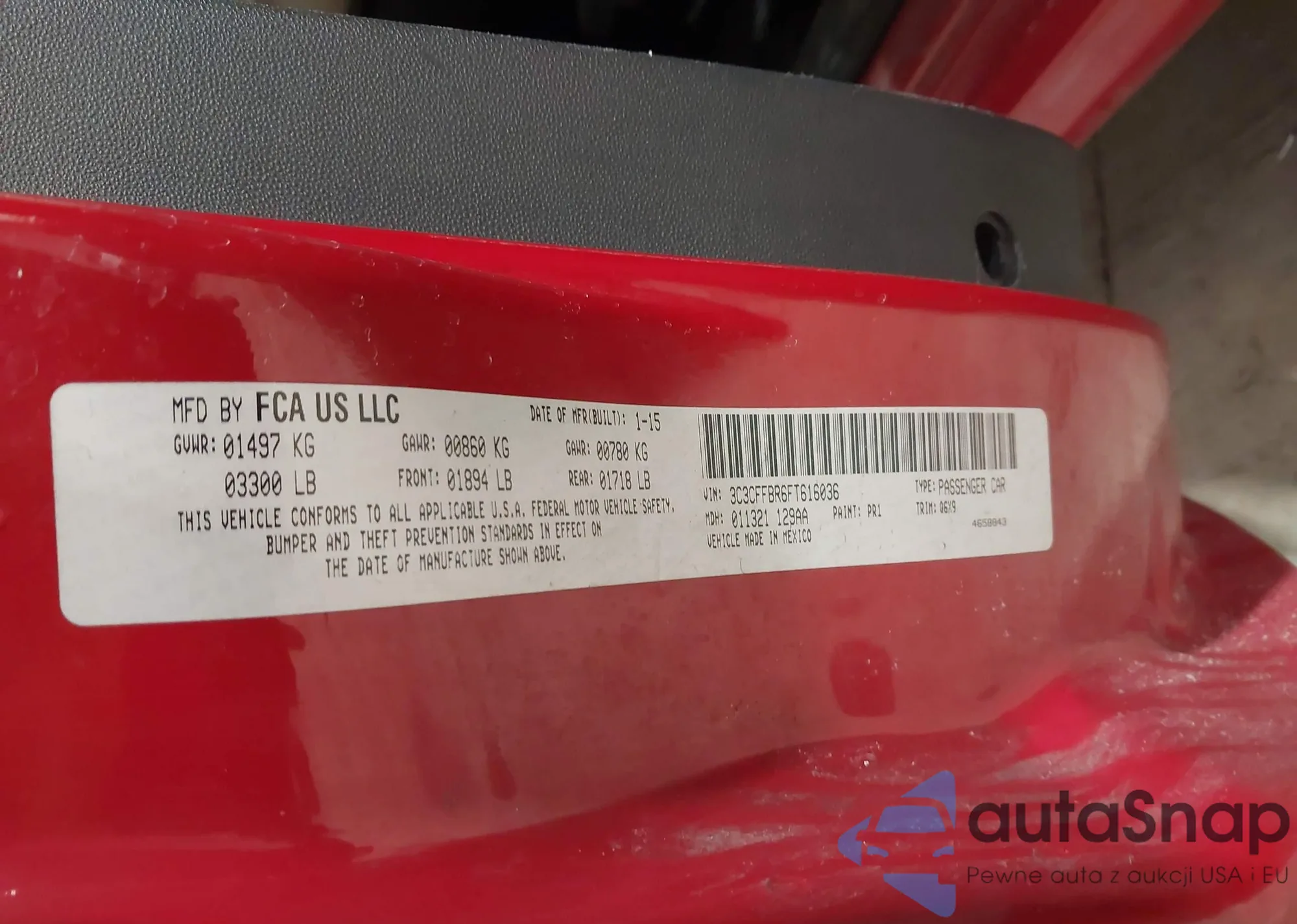 • VIN: 3C3CFFBR6FT616036