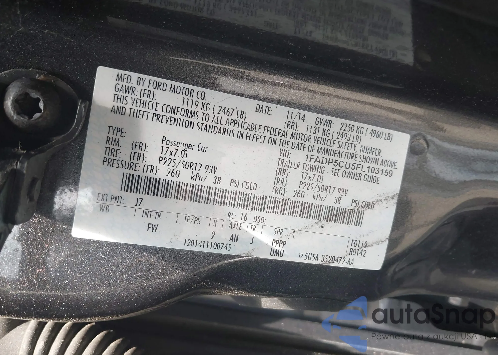 VIN: 1FADP5CU5FL103159