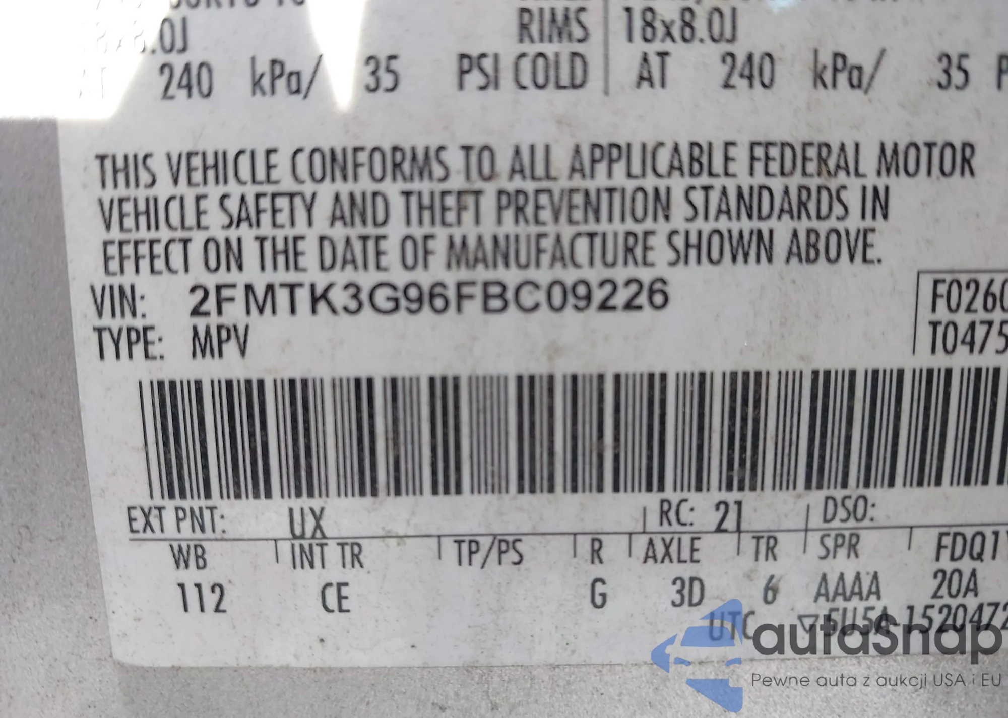 VIN: 2FMTK3G96FBC09226