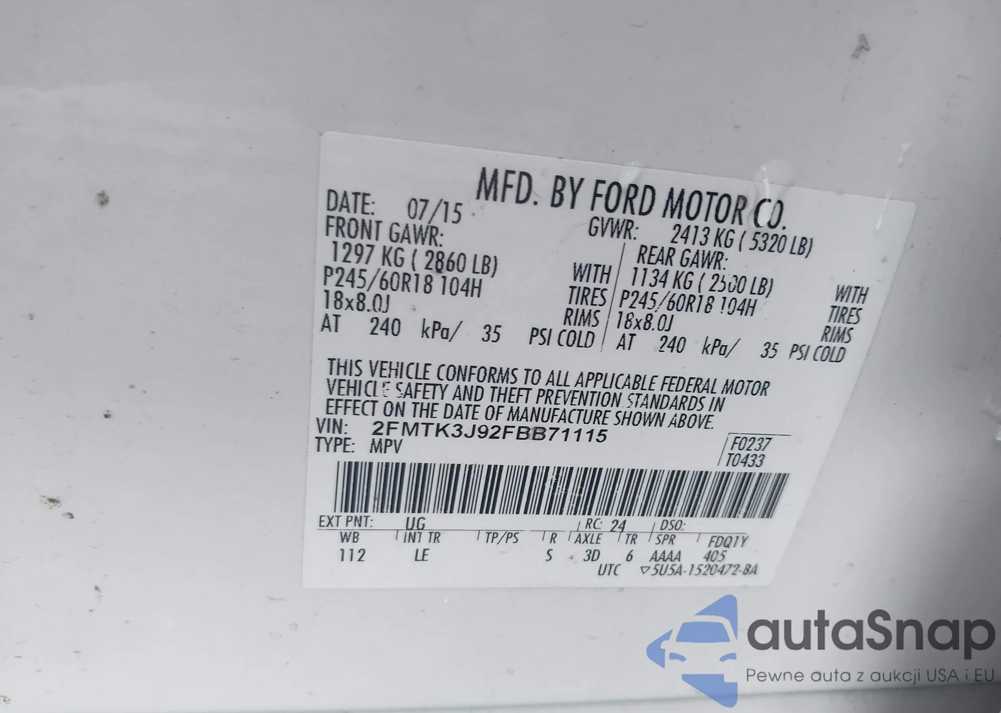 VIN: 2FMTK3J92FBB71115
