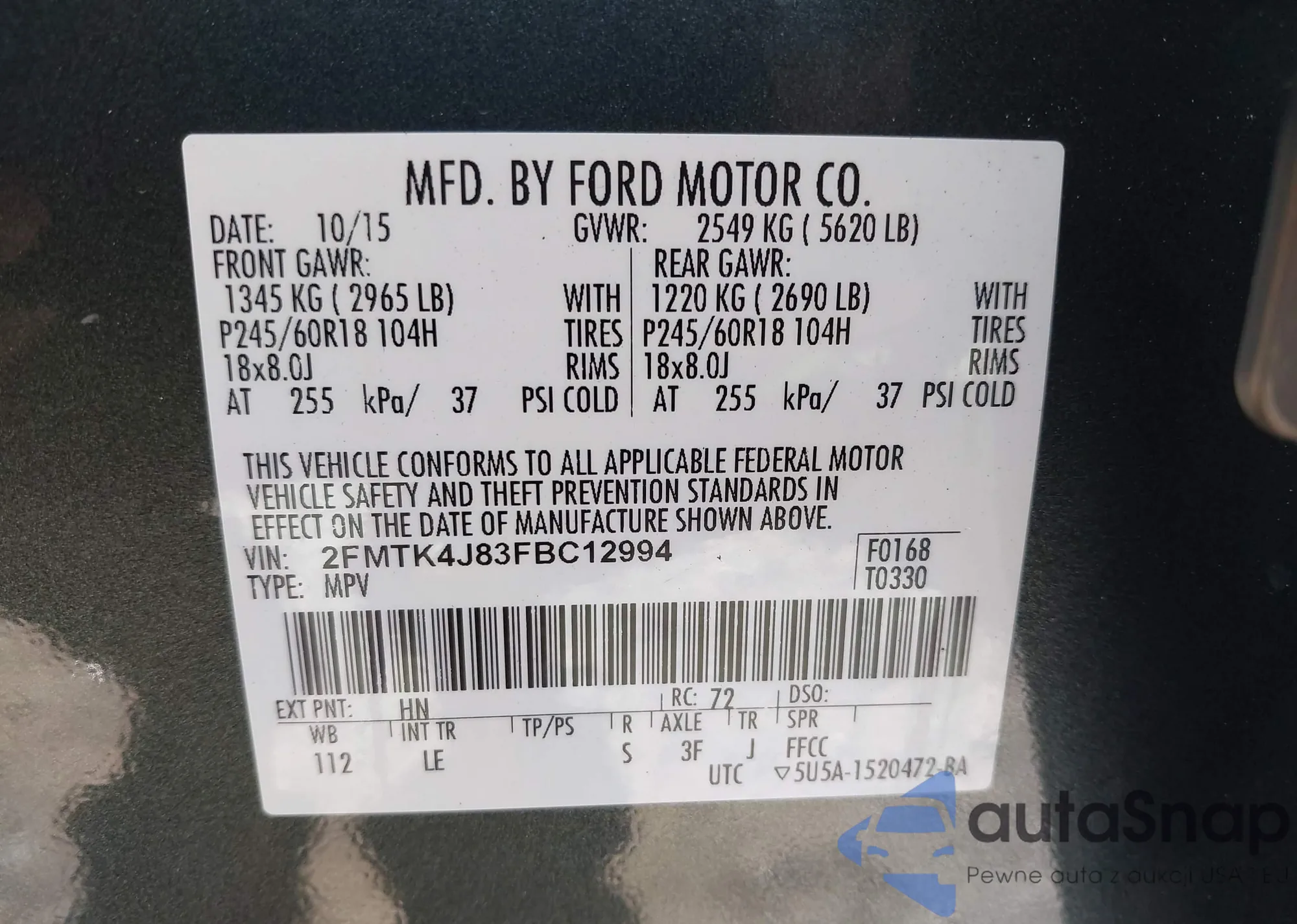 VIN: 2FMTK4J83FBC12994