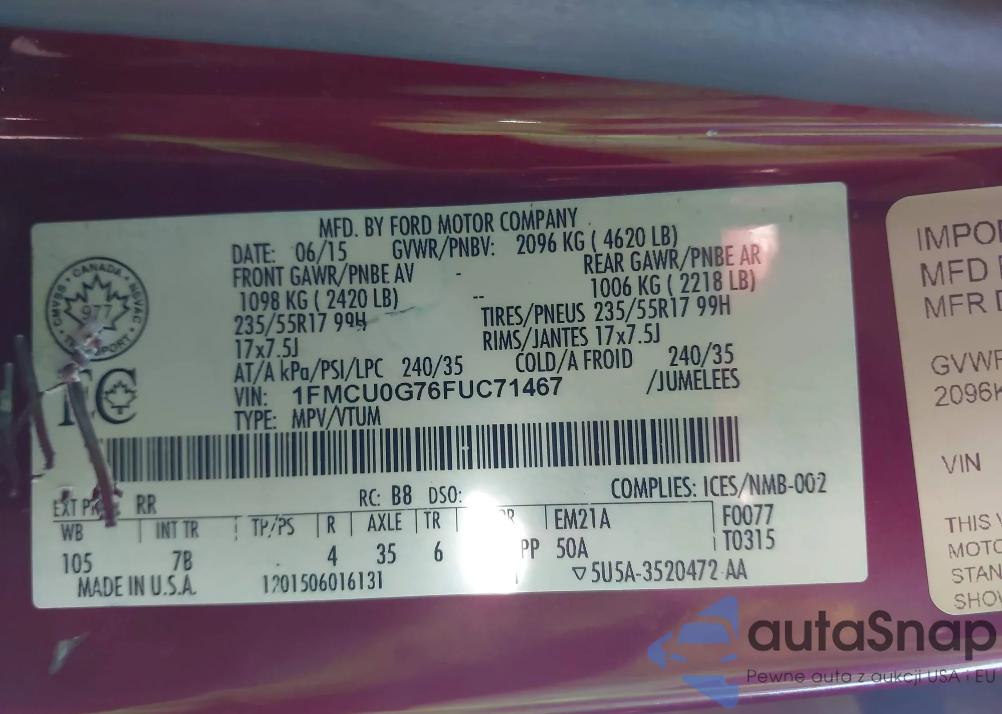 VIN: 1FMCU0G76FUC71467