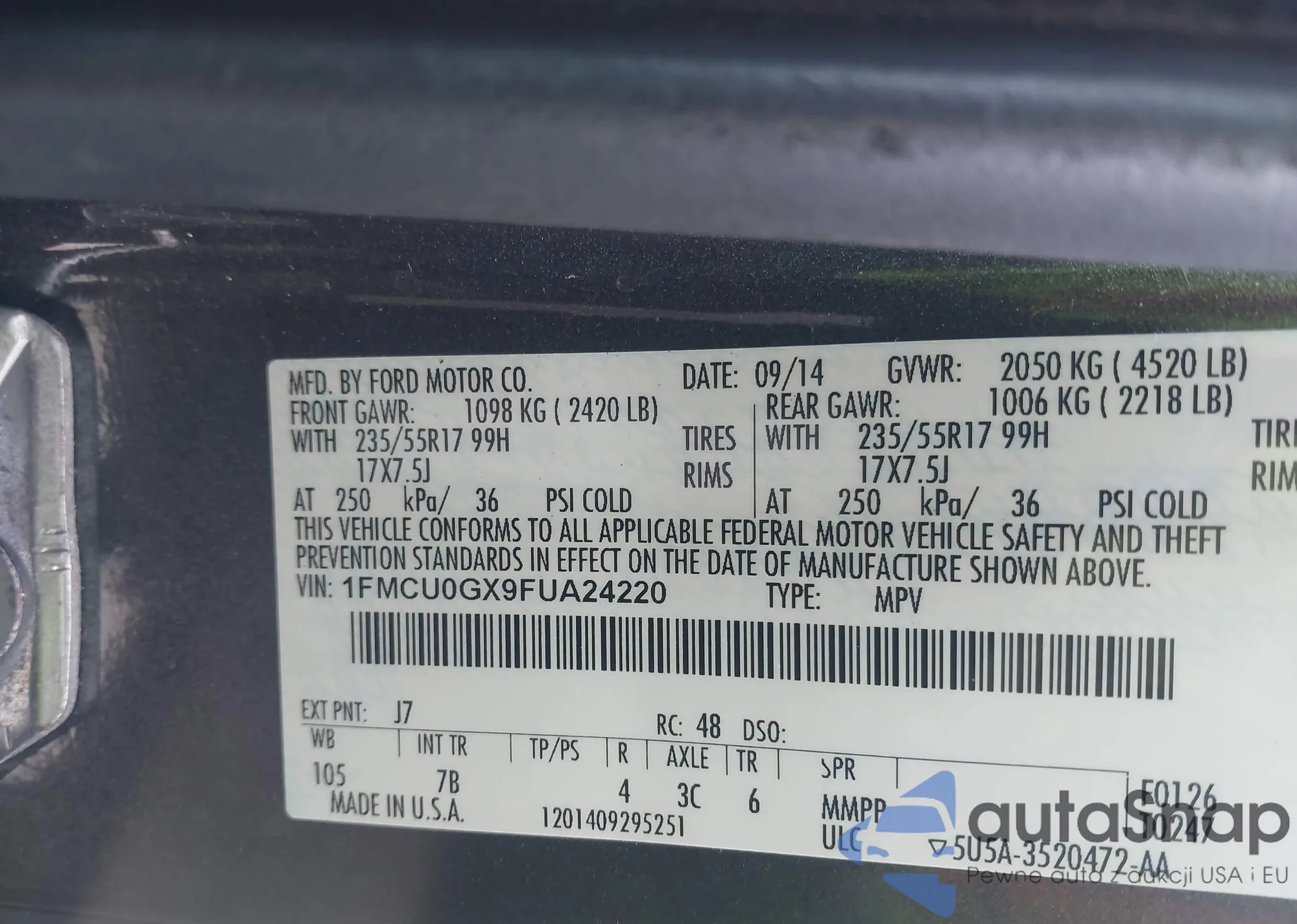 VIN: 1FMCU0GX9FUA24220