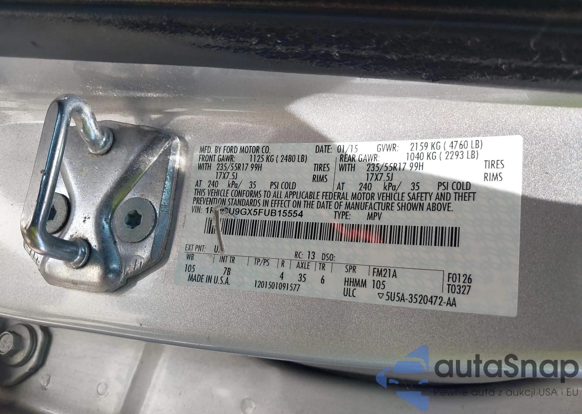 VIN: 1FMCU9GX5FUB15554