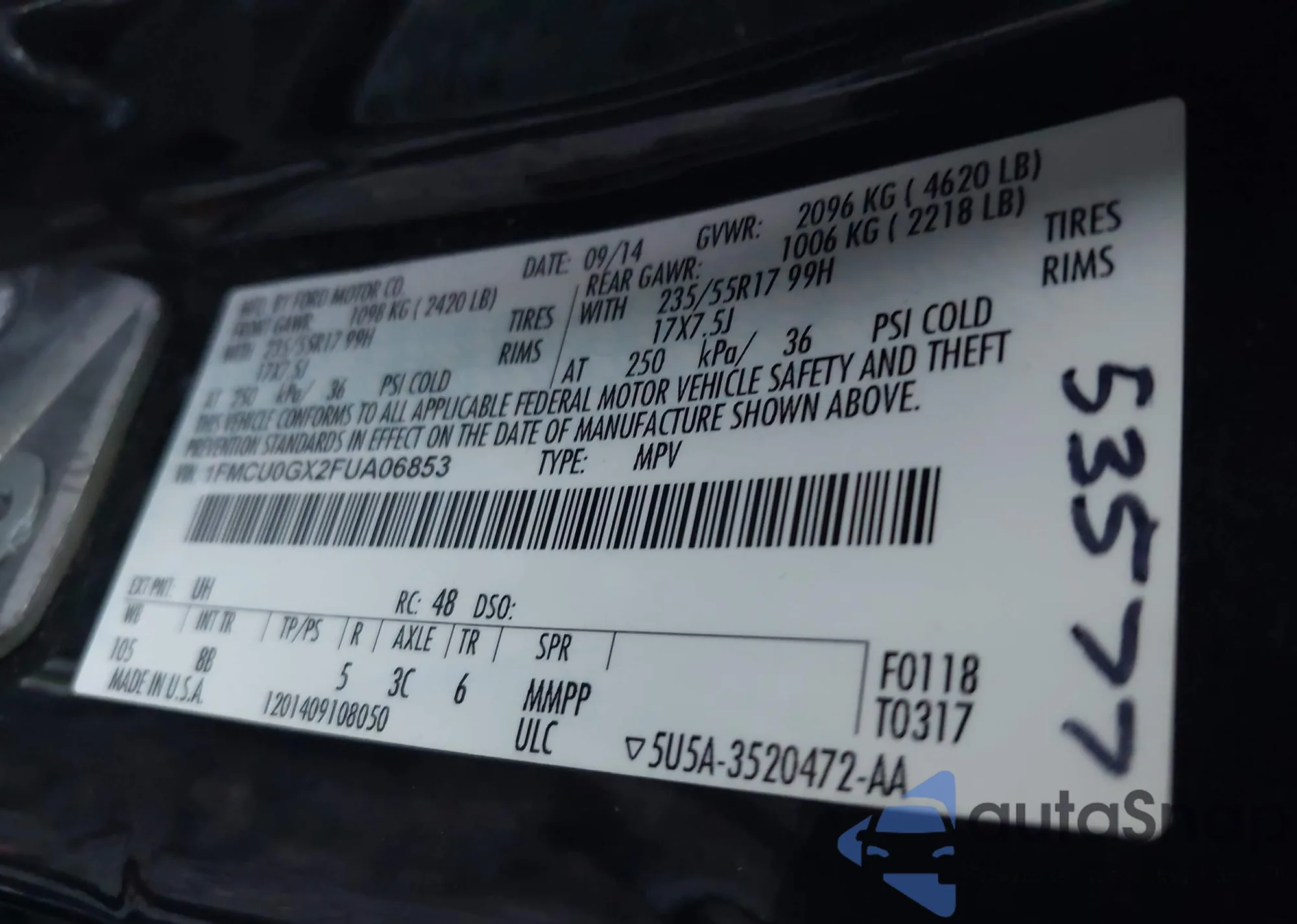 VIN: 1FMCU0GX2FUA06853