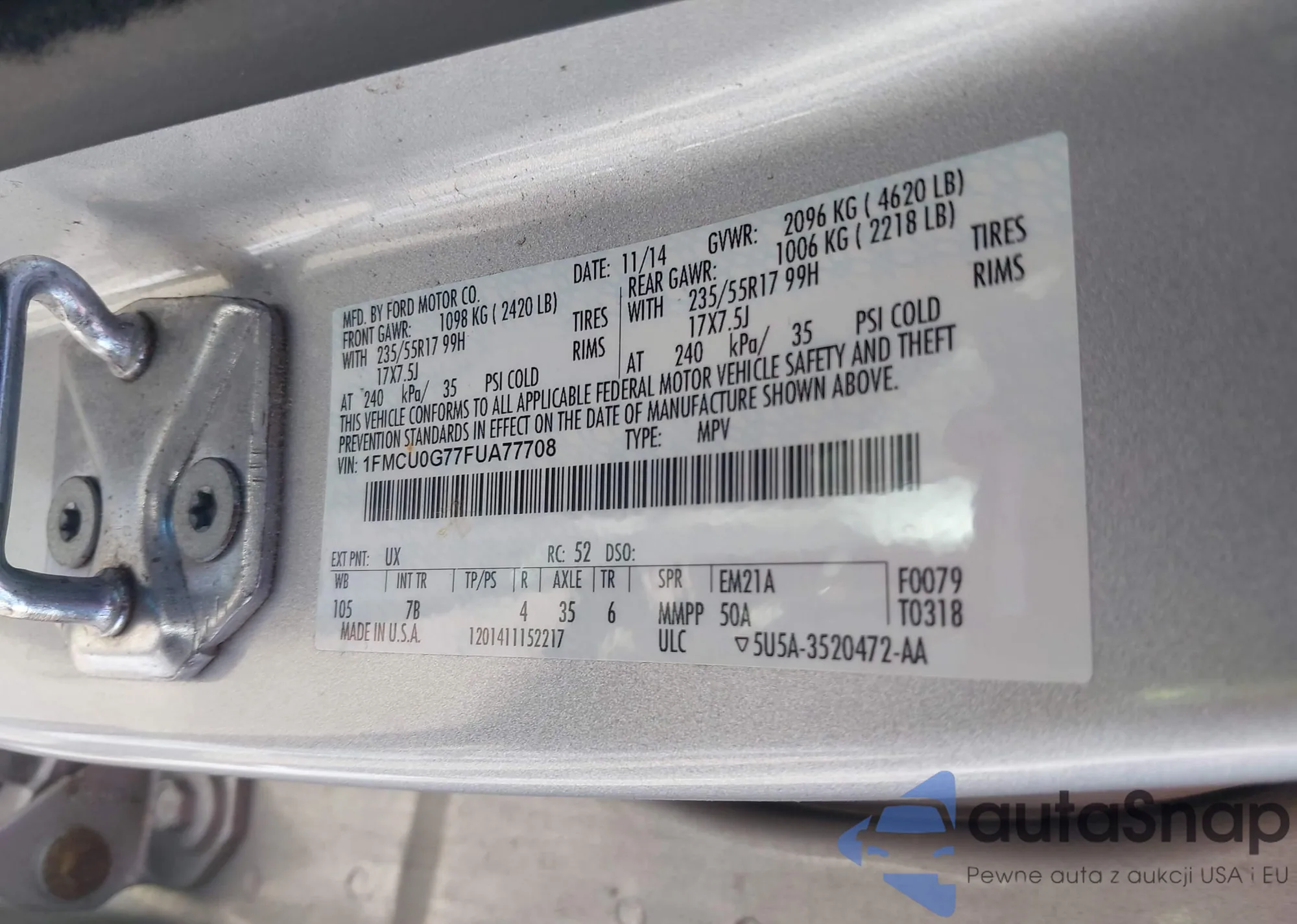 • VIN: 1FMCU0G77FUA77708