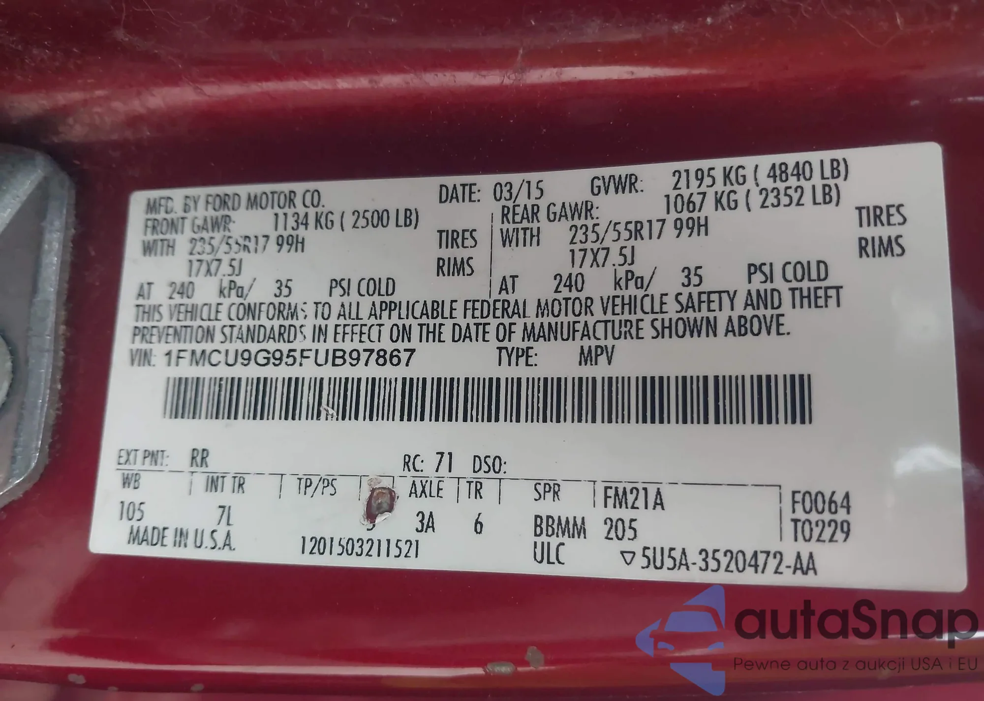 VIN: 1FMCU9G95FUB97867