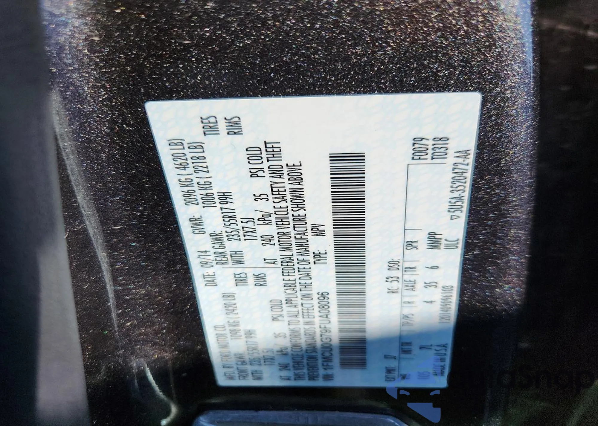 VIN: 1FMCU0G79FUA08096
