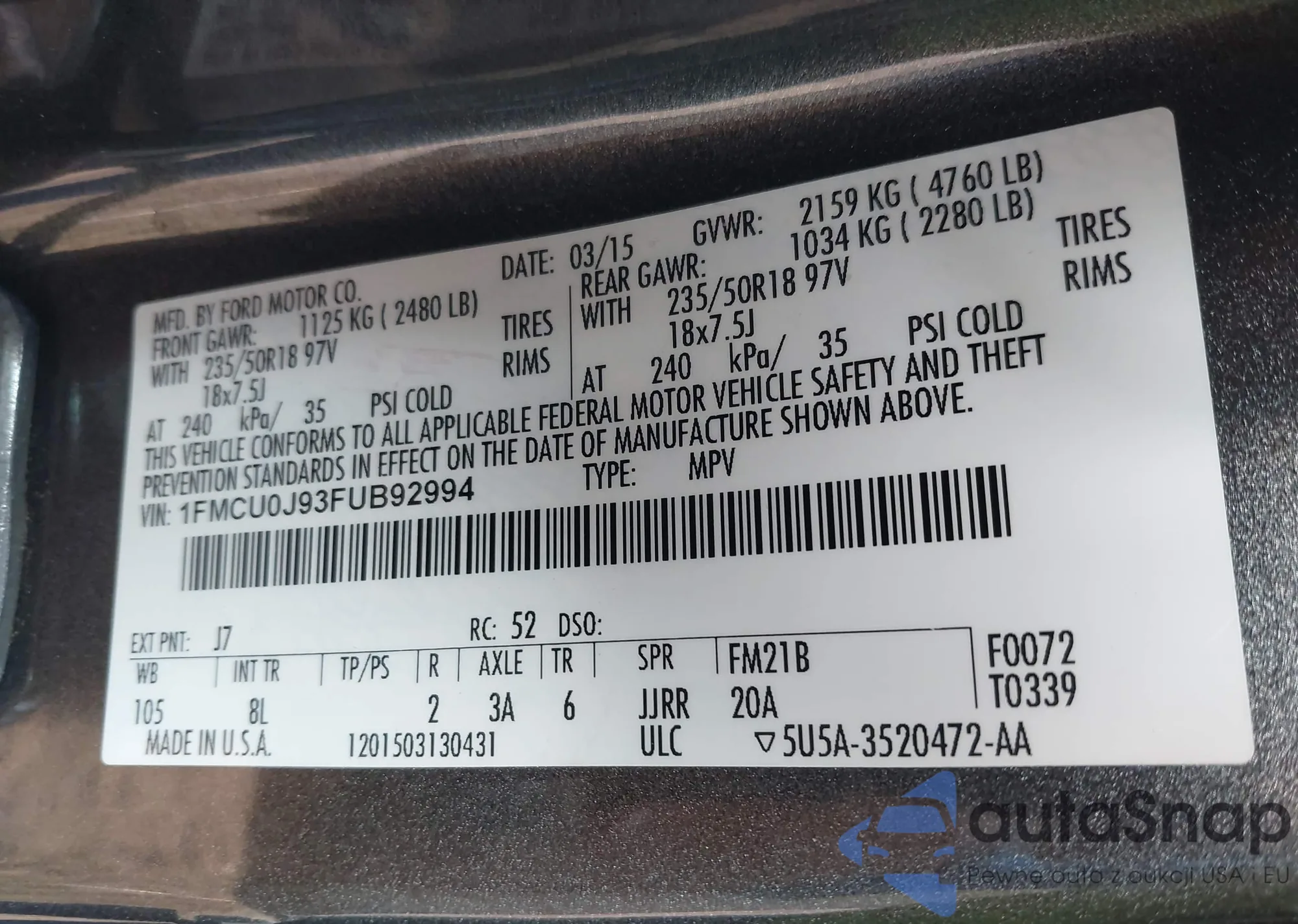 VIN: 1FMCU0J93FUB92994
