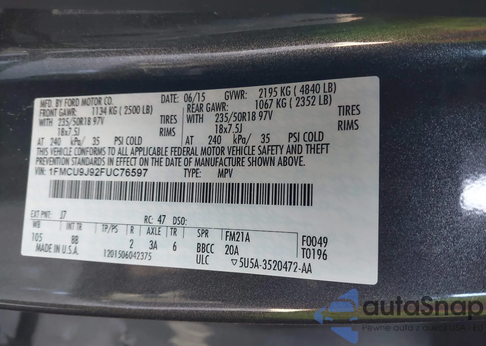 VIN: 1FMCU9J92FUC76597