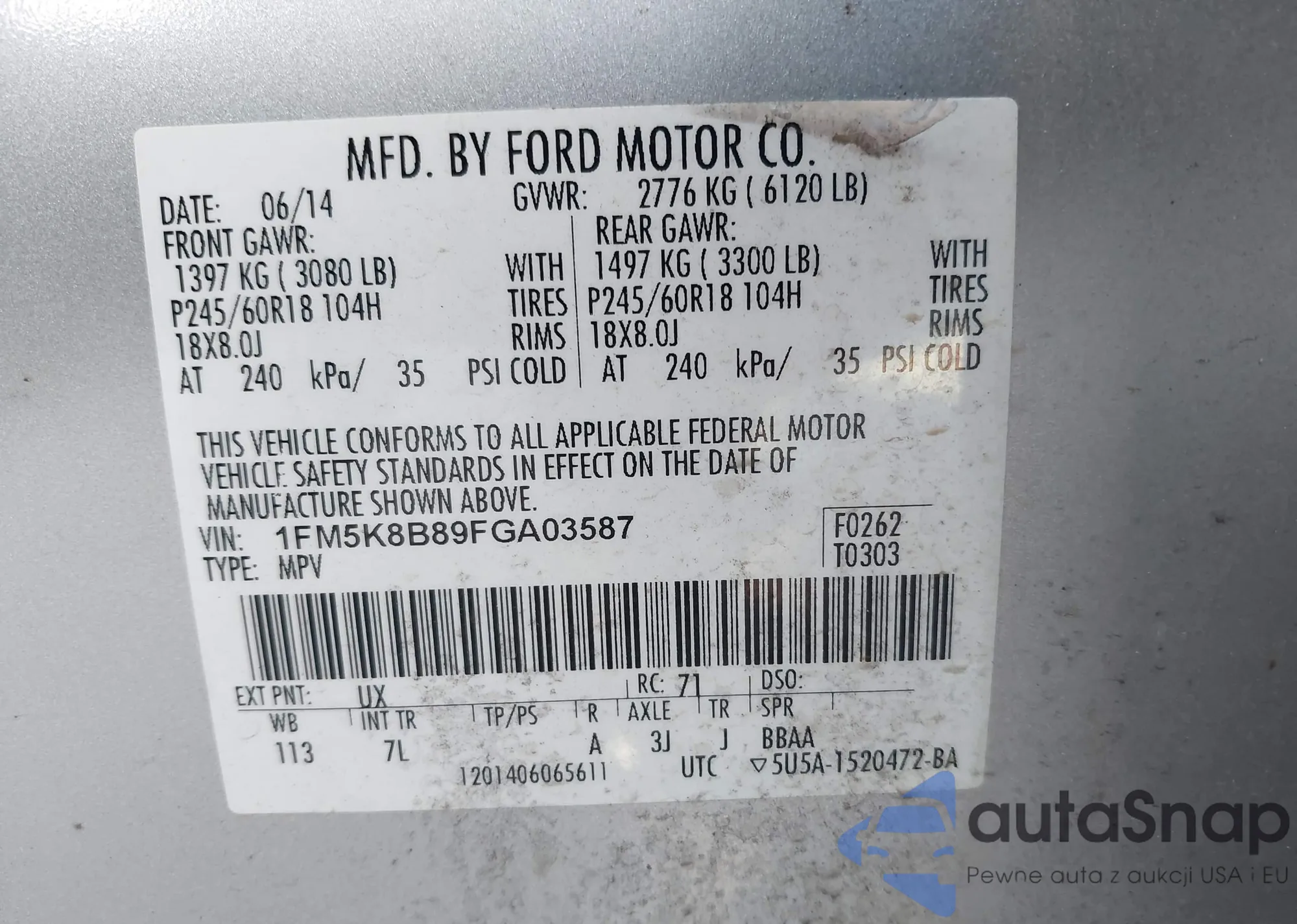 • VIN: 1FM5K8B89FGA03587