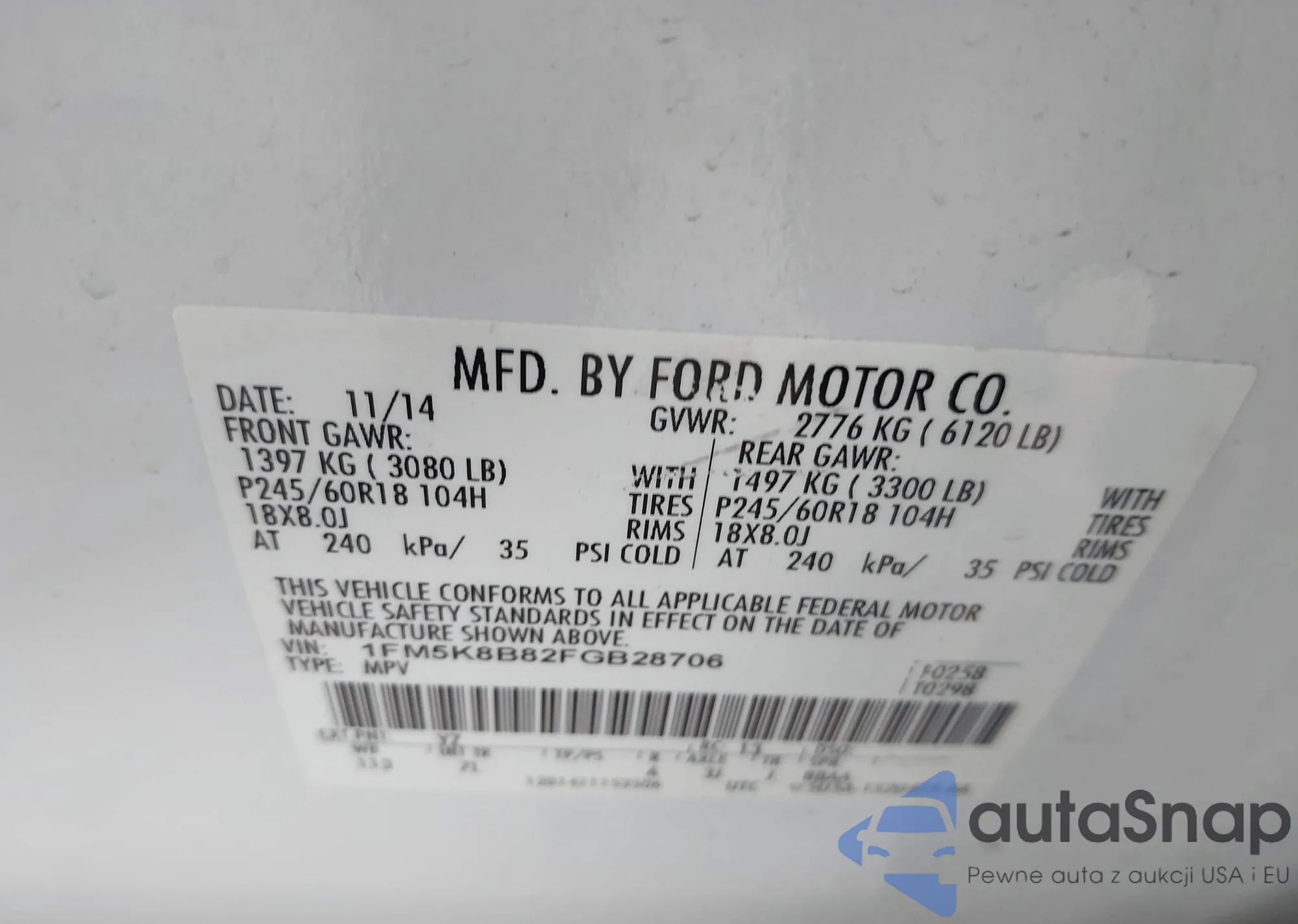 VIN: 1FM5K8B82FGB28706