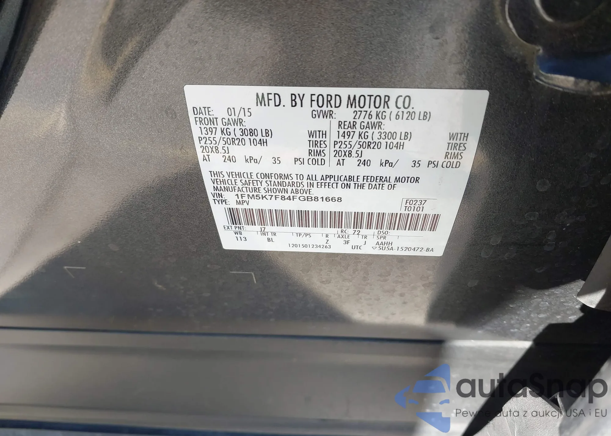 The car Ford Explorer 2015 (VIN 1FM5K7F84FGB81668) has not been auctioned before. The documents are clean, and the mileage matches or is below the market average. Sold by an insurance company – we recommend purchase. Delivery to the port will take approx. 6–8 weeks.