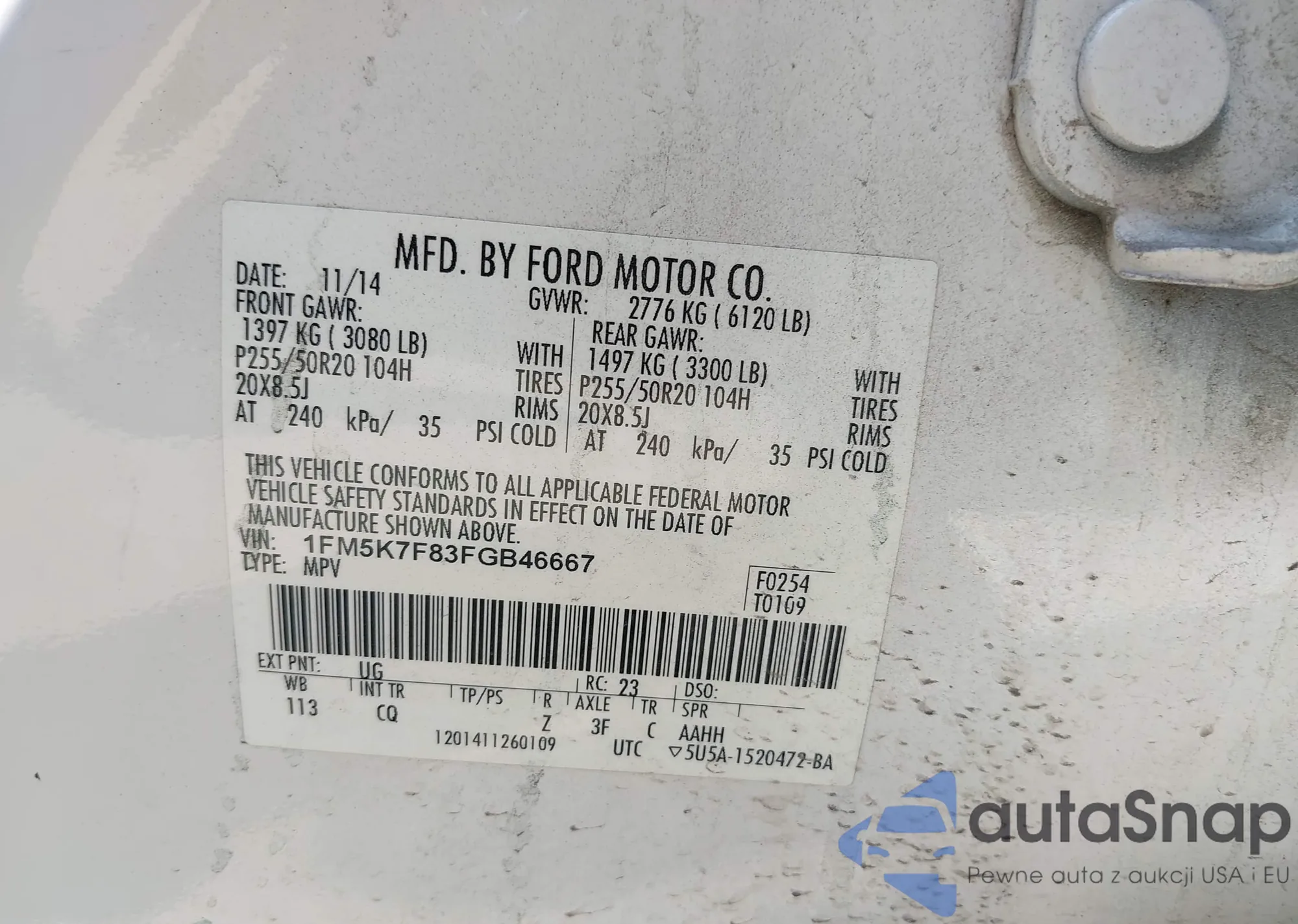 VIN: 1FM5K7F83FGB46667