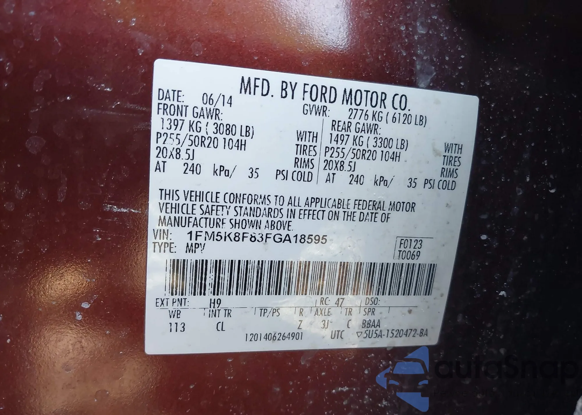 VIN: 1FM5K8F83FGA18595