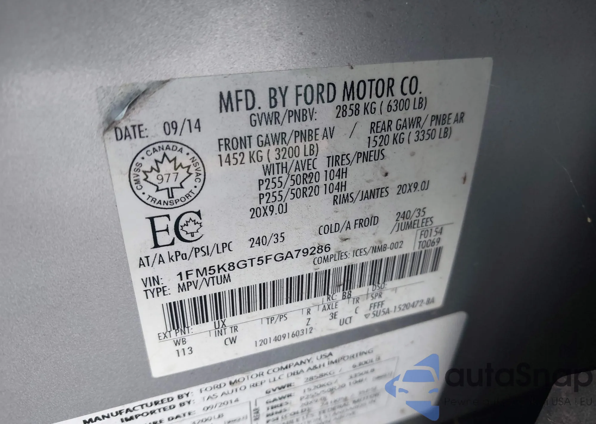 VIN: 1FM5K8GT5FGA79286