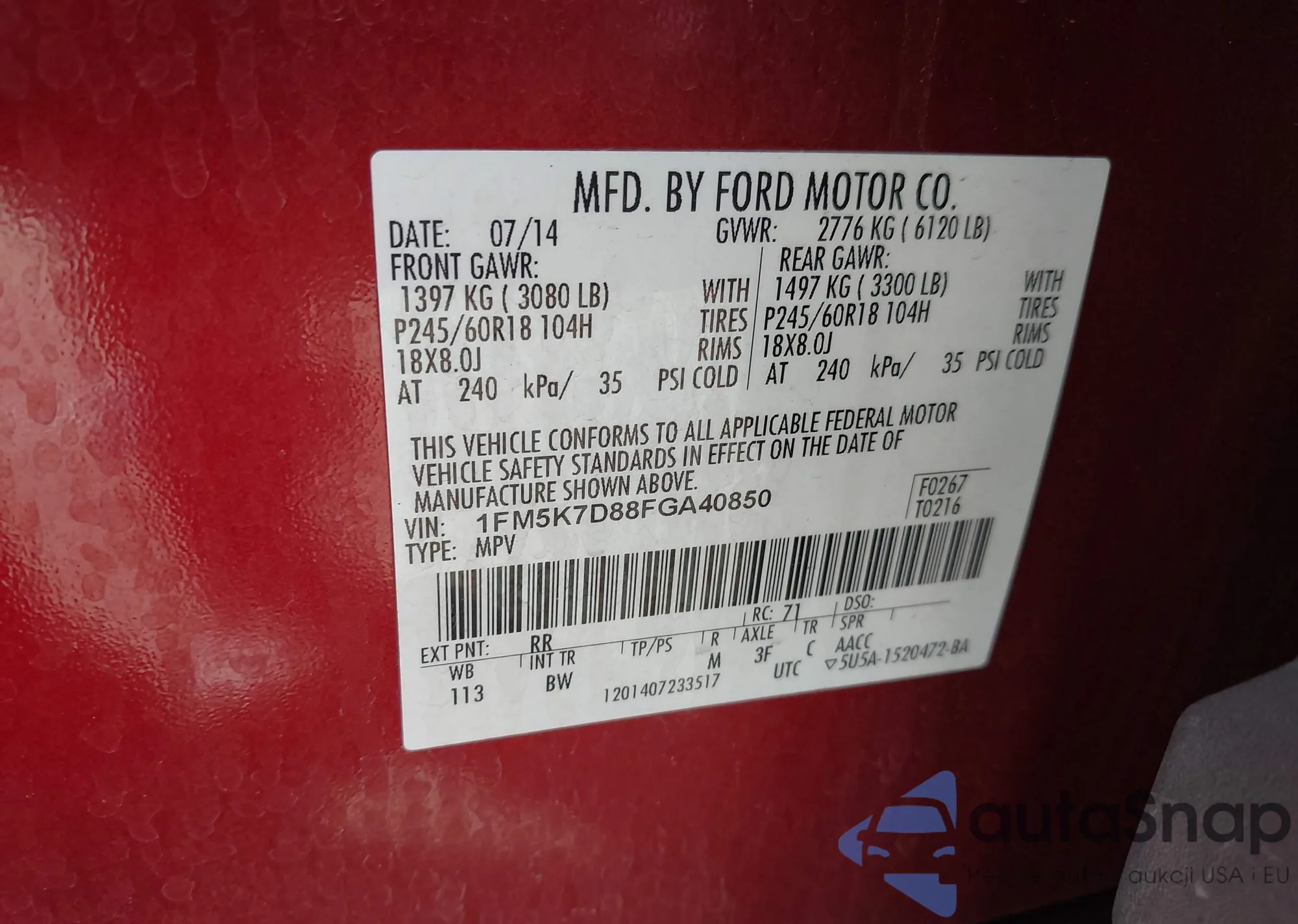 The car Ford Explorer 2015 (VIN 1FM5K7D88FGA40850) has not been auctioned before. The documents are clean, and the mileage matches or is below the market average. Sold by an insurance company – we recommend purchase. Delivery to the port will take approx. 6–8 weeks.